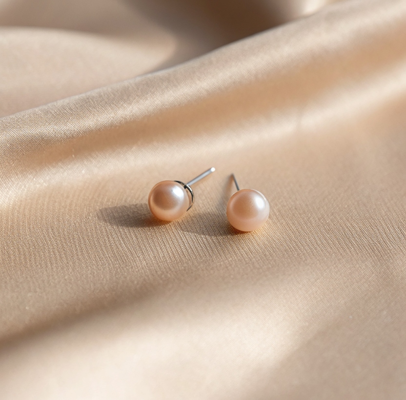 Minimal yet timeless, the Soft Dawn Pearl Studs celebrate the quiet elegance of natural beauty. Featuring softly luminous round pearls in a warm blush tone, these earrings are designed to reflect light with a gentle, understated glow.