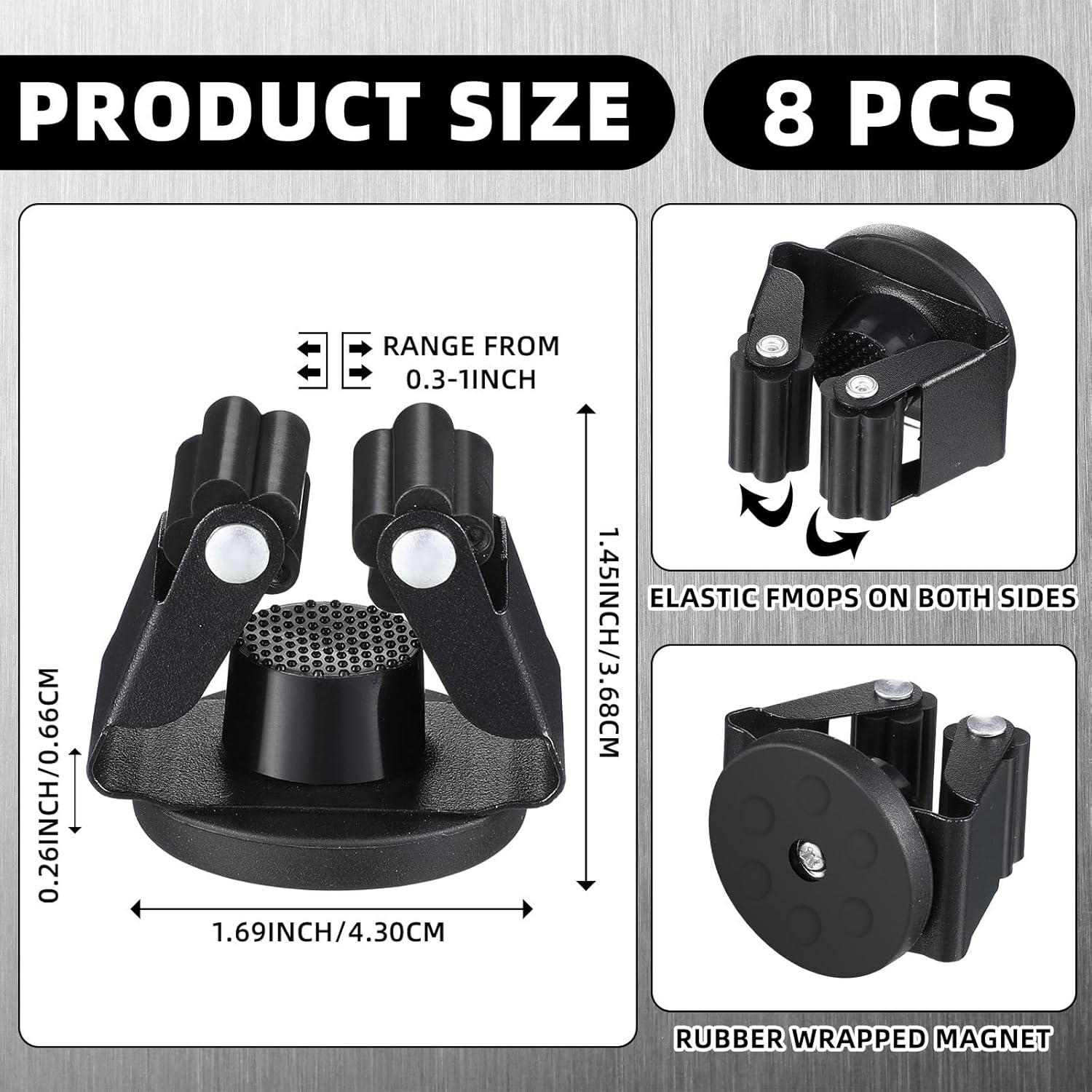 Features: Anti slip feature: The anti slip feature of our mop hanger eliminates the worry of your cleaning tools sliding down or falling. This feature ensures your mops and brooms stay put, making it easier for you to find and grab them anytime you need. Suitable for various spaces: This broom wall holder is an asset for every corner of your home, from the garage to the laundry room. Its sleek and minimalistic design ensures the magnetic mop broom holder fits in these areas, harmoniously complementing both its function and aesthetics. Specifications: Main Material: alloy, rubber Color: black Size: as shown in the picture Package includes: 10 x Magnetic mop broom holder Notes: Manual measurement, please allow slight errors on size. The color may exist a slight difference due to different screen displays.