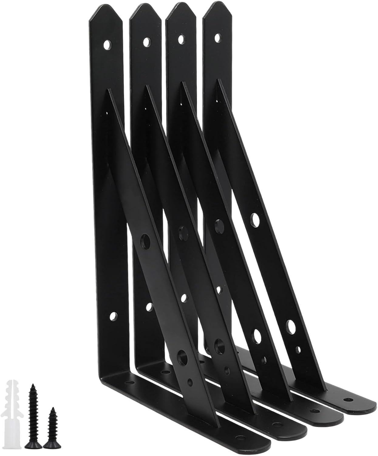 Experience the Perfect Blend of Strength and Style with Our 12-Inch Shelf Brackets. Transform your space with our premium floating shelf brackets, designed to create a sleek, modern look. These robust l brackets for shelves provide exceptional support for your wall mount shelf projects, ensuring your shelves are both secure and visually stunning. Crafted from high-quality steel, these l brackets for wood are built to last. Each bracket undergoes rigorous testing to guarantee it can hold significant weight, making them ideal for books, decor, kitchen items, or even heavy electronics. The reinforced design and corrosion-resistant finish ensure long-term durability in any environment. Imagine your favorite books and decor displayed elegantly on a sturdy wall mount shelf. Our brackets make installation simple, allowing you to create custom storage solutions in your living room, bathroom, garage, or office. The clean lines of these floating shelf brackets add a touch of sophistication to any room. Package includes 10 pcs of 12-inch shelf brackets