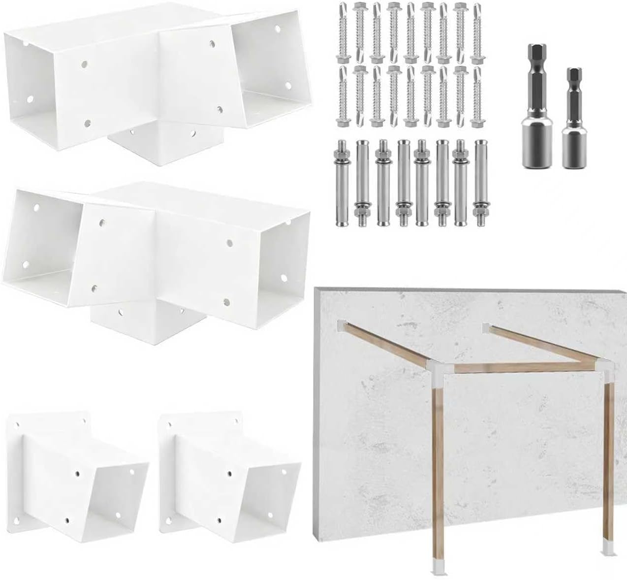Product DescriptionHeavy duty steel pergola bracktsOur brakcets are made of high quality galvanized steel,covered by Black powder coating,with good anti-corrosion and anti-rust ability,matte black appearance,fashionable and beautifulMaterial: Heavy Duty Galvanized SteelDiameter: 3.6 x 3.6 inchFit for: 3.5 x 3.5 inch lumberHeight: 5.9 inchTube wall thickness: 0.08 inchSunshade sail Hole Diameter:0.4 inchFixed hole diameter: 0.24 inchProcess: Black powder coatingWide range of applications: building pergolas,gazebos,playgrounds,porch,log cabins and other various scenarios