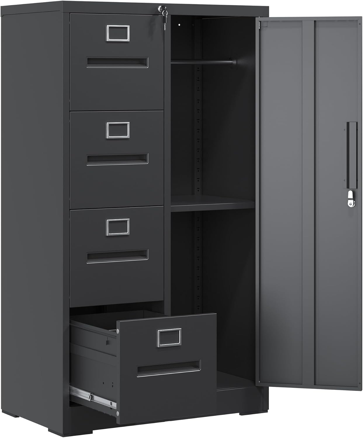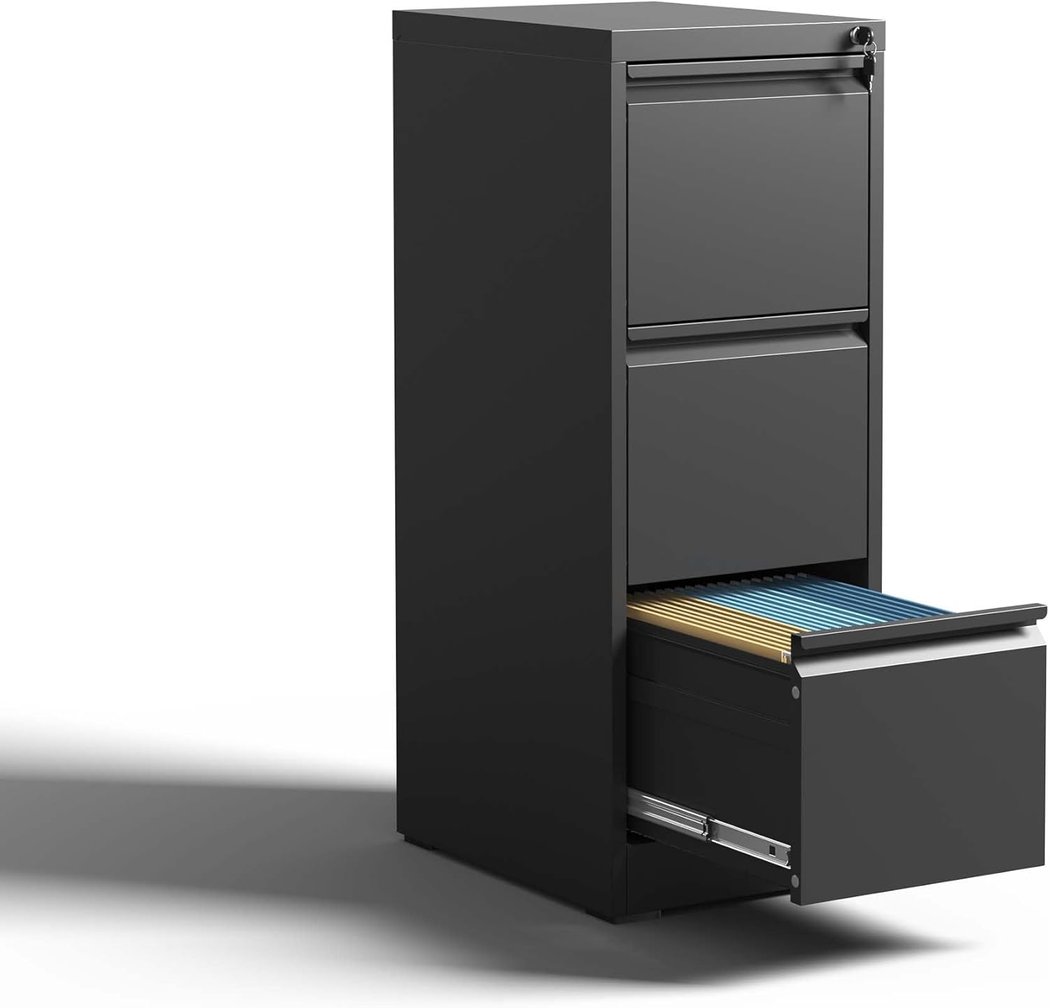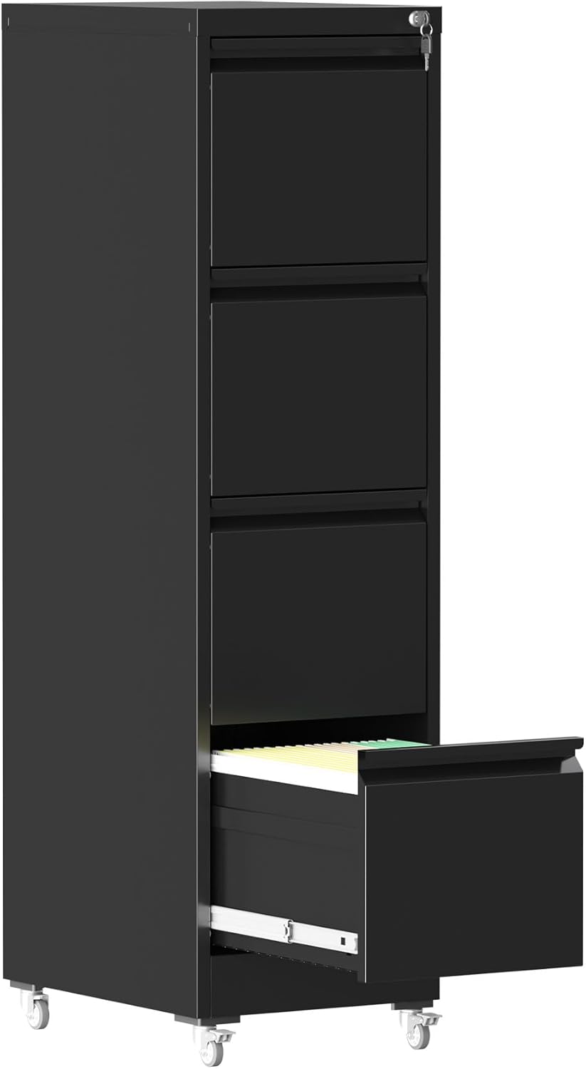 Product Description: Enhance your home office with our Sturdy and Durable Filing Cabinet. Crafted from steel, this cabinet is designed for long-lasting use, featuring full extension drawers with smooth operation. The anti-tilt design ensures safety, and its spacious storage caters to various file sizes. Easy assembly and reliable customer support make this cabinet a perfect solution for your storage needs.