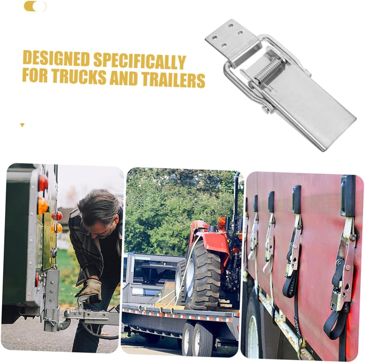 Package List 2 x locking buckles Features -Essential part: this lock clasp buckle latch is a musthave for truck trailers, ensuring the cargo compartment remains secure trailer replacing gate latch -Size:18.00X7.00X2.00cm/7.07X2.75X0.79in galvanization trailer latch -Comprehensive hardware solution: this latch serves as a comprehensive hardware solution for truck trailers, meeting all your locking needs lock clasp buckle latch -Userfriendly installation: the latch is designed for easy installation, allowing you to secure it to the cargo compartment with minimal effort truck accessory -Color:Silver replaceable gate latch -Robust locking mechanism: constructed with highstrength materials, the latch provides a robust locking mechanism to keep cargo in place truck latch lock -Material:Galvanization truck supply - durability: built to withstand tough conditions, this latch offers durability and reliability trailer gate spring latchGoods Descriptiontrailer carriage latch The spring-loaded mechanism provides a secure and reliable locking solution, preventing accidental openings and ensuring the safety of your cargo.cargo trailer door latch hasp Easy to install, this latch can be used to replace existing latches on trailer gates, truck gates, and RV doors, providing a quick and efficient solution for maintaining the security of your vehicle.trailer supply This versatile latch lock is suitable for a wide range of applications, including RVs, trailers, and trucks