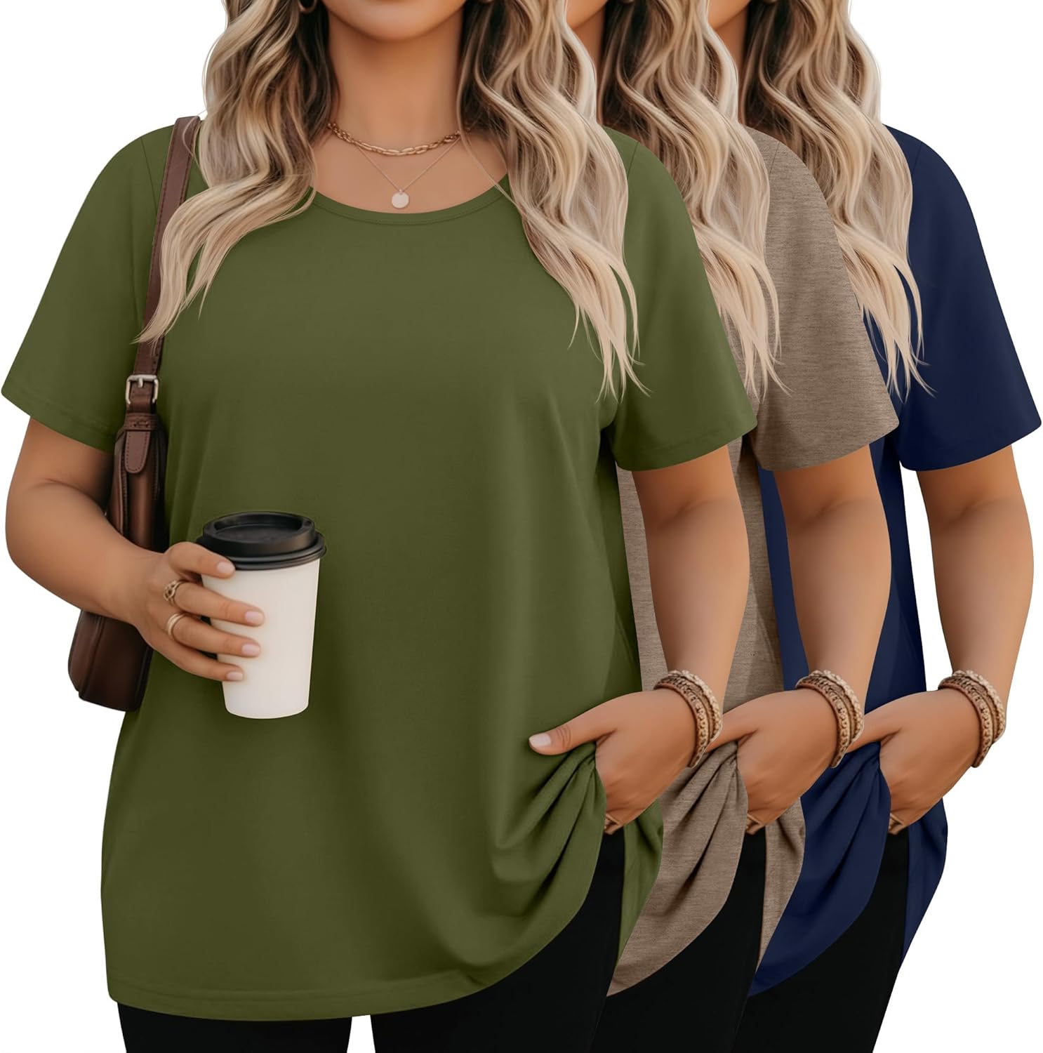 Features: Size selection: Please check our size chart before you place order for comfortable wearing. Garment: Machine washable or hand wash with cold water, easy to wash and dry, hang or line dry Material: 60% Polyester, 35% Cotton, 5% Spandex Package includes: 3 x Women's plus size short sleeve t-shirts Notes: Manual measurement, please allow slight errors on size. The color may exist a slight difference due to different screen displays