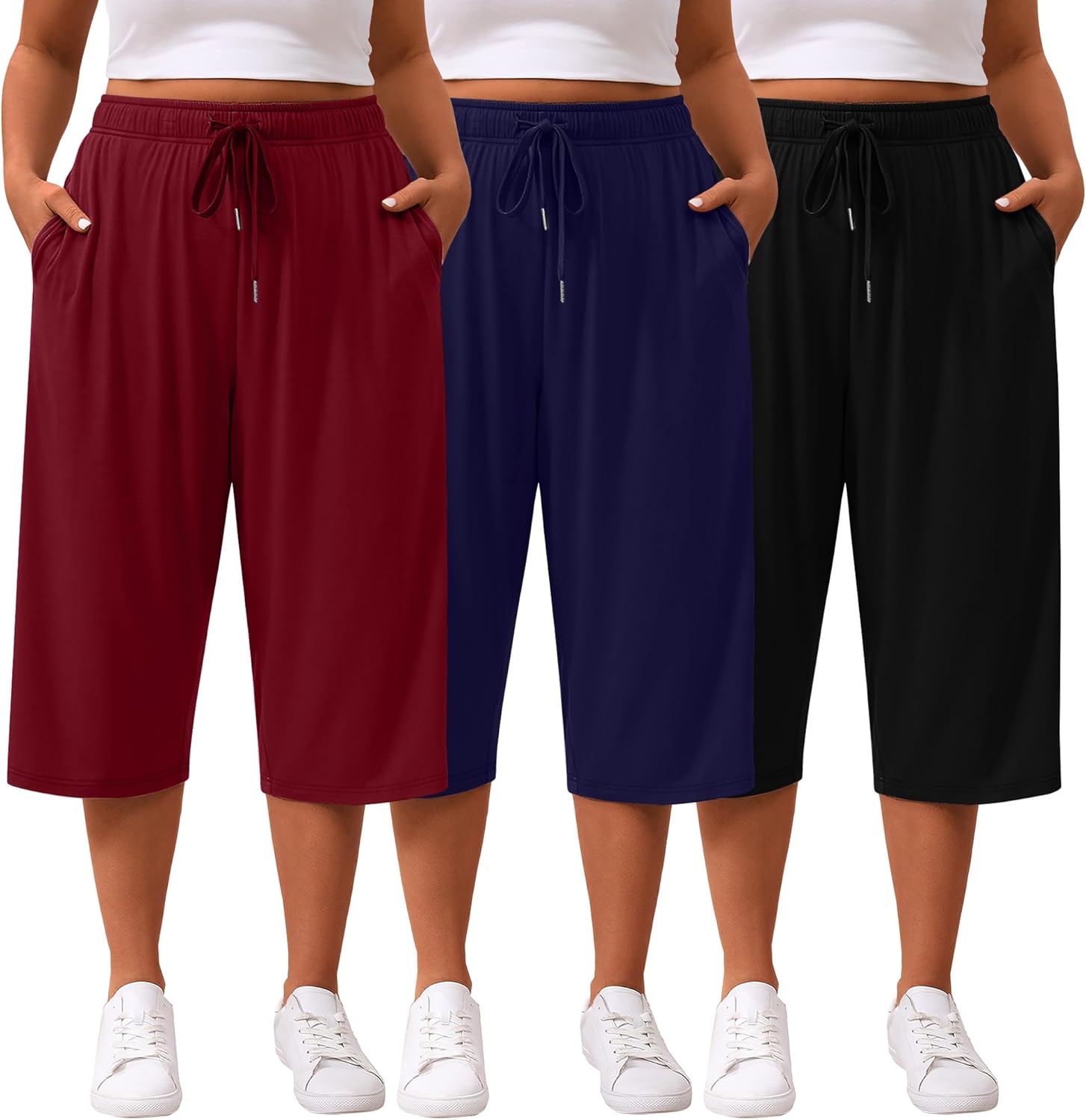 Features: The Pants feature a special back split design, and the design's details are significantly seen in the loose wide leg offering comfort. The high waist design is another notable feature, contributing to a chic look when worn These plus size capri pants accommodate a range of sizes, from XL to 5XL. The variety of sizes ensures the product caters to most people's body needs, showcasing options that can fit individual body shapes and sizes comfortably. Specifications: Material: 65% Cotton, 30% Polyester, 5% Spandex Size: from XL to 5XL Package includes: 3 x women's plus size capris pants Notes: Manual measurement, please allow slight errors on size. The color may exist a slight difference due to different screen displays. Check the Locoowai size chart before purchasing, it would help you find a more accurate size for yourself. Hand/machine wash in gentle with cold water, hang to dry or line dry, do not bleach, warm iron if needed, wash dark colors separately.
