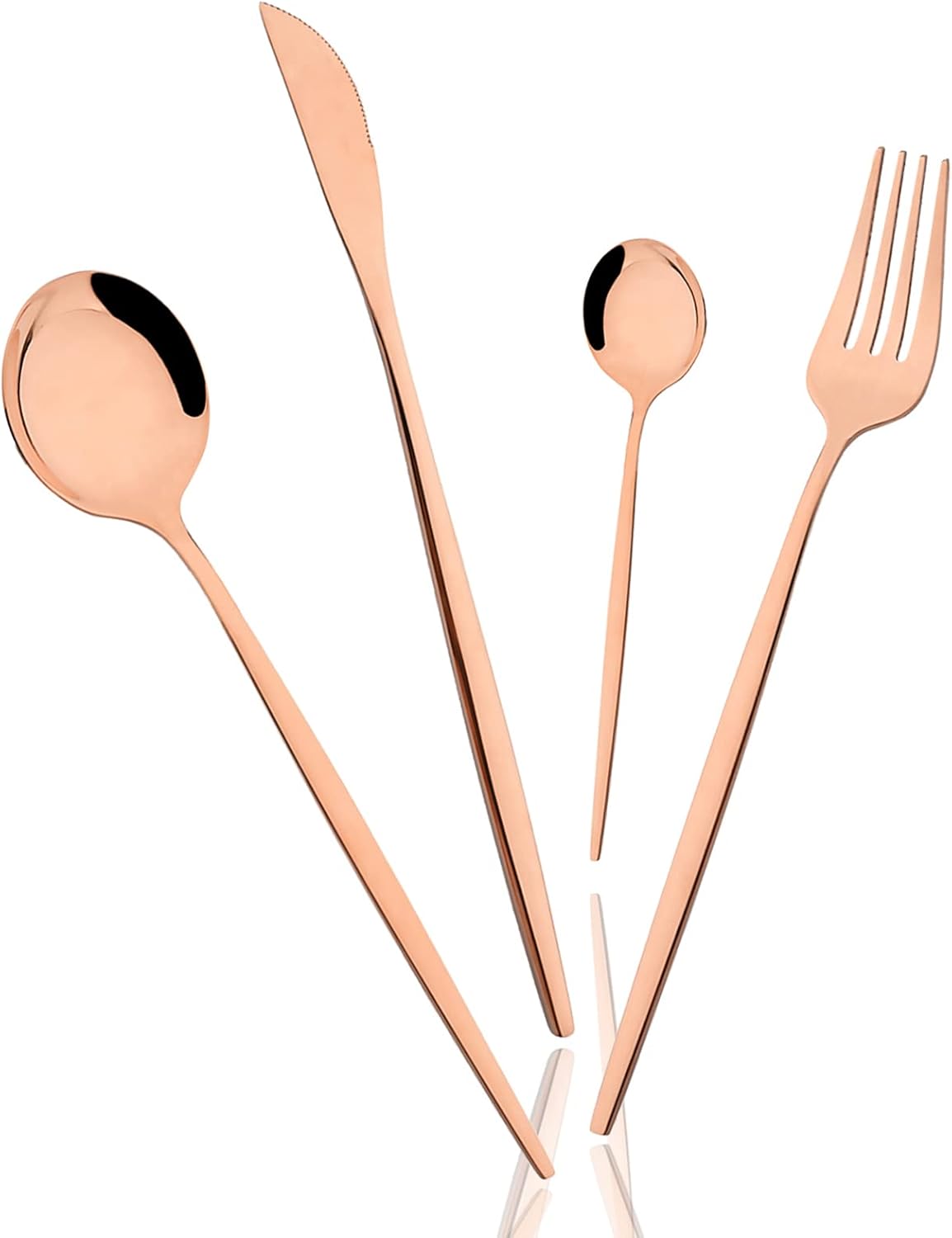 Color:White Gold Why Choose Us? :) * Made of 18/0 Stainless Steel. * Safe: Food grade, lead free and rust free. * Dishwasher safe, easily clean up by hand-wash. * Many colors are available for you to choose. * Best Gift for Wedding Birthday Festival Housewarming product size Knife Dimensions: Length: 8.66inch Weight: 40g Dinner Spoon Dimensions: Length: 8.26inch Weight: 40g Tea Spoon Dimensions: Length: 5.11inch Weight: 10g Dinner Fork Dimensions: Length: 8.46inch Weight: 30g Using Instruction 1. Please wash the cutlery set with warm soapy water before first using to wash off any processing residue left from manufacturing. 2. Please clean and dry the flatware set after using for your healthy daily use, and store in dry place for its durability. 3. Please use soft towel to clean the set; Do not use iron wire to destroy their smooth surface. Thank you for shopping in our store. If you have any problems, please feel free to contact us. We will try our best to satisfy you. Thank you! Happy shopping!