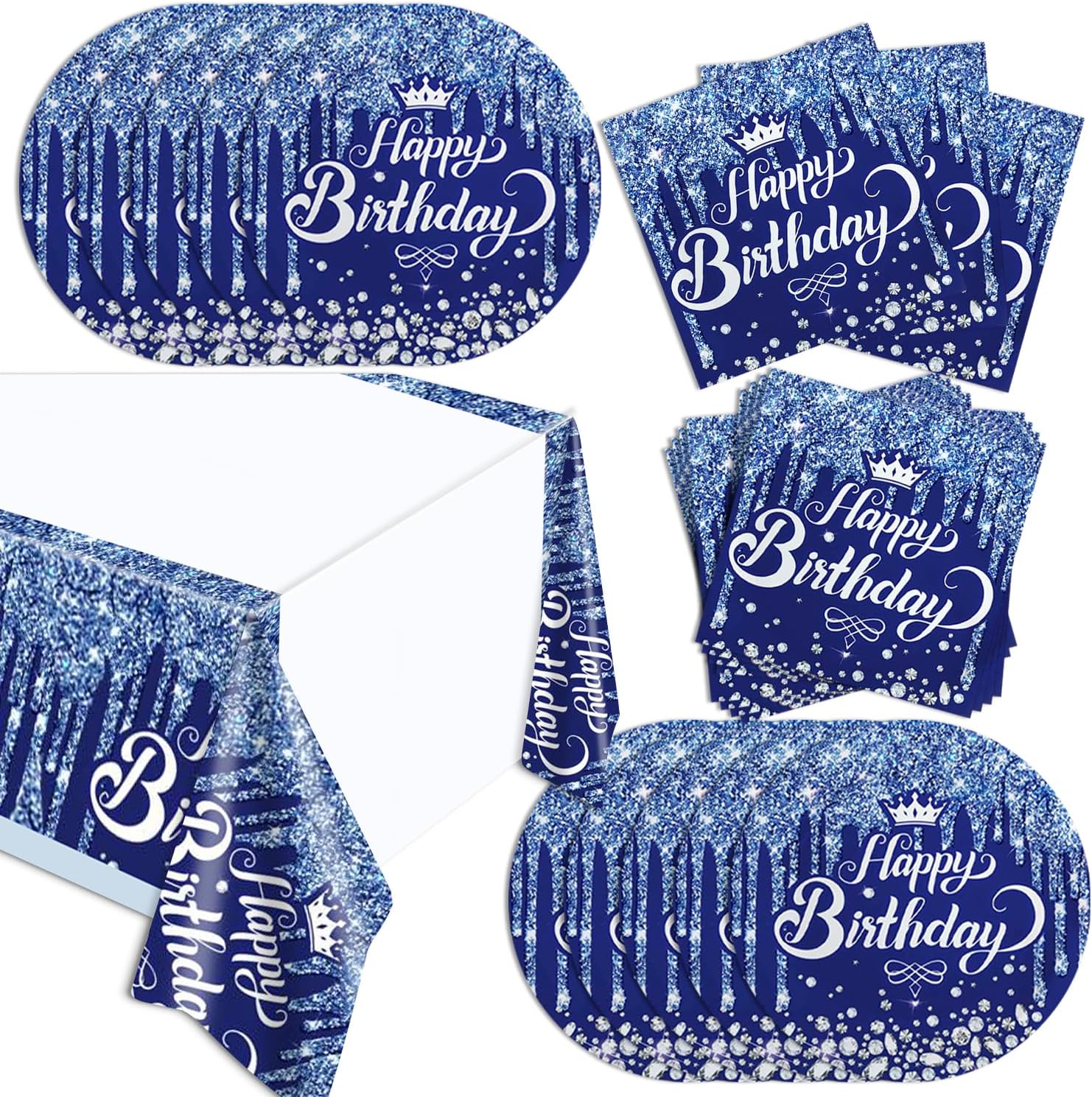 The package includes(41pcs):20 dinner plates (7")20 napkins (6.5")1 banquet table cover (70" x 42")The 13th Black Silver tablecloth is made of thick and sturdy plastic, which is almost not easy to tear, avoiding the embarrassment caused by the fragile tablecloth. Suitable for indoor and outdoor use. The paper tray is made of high-quality cardboard