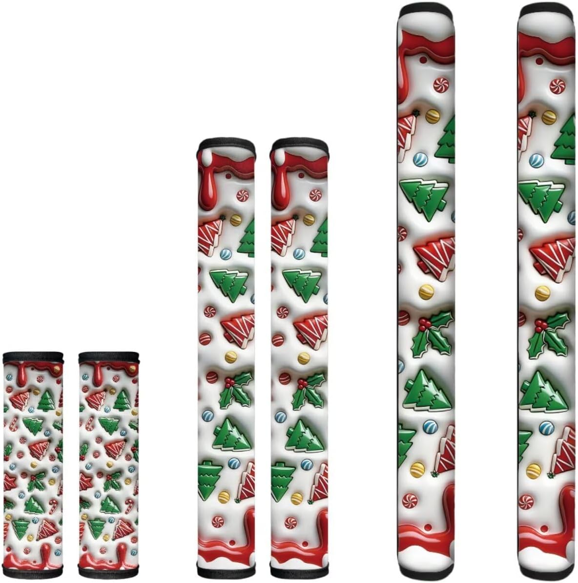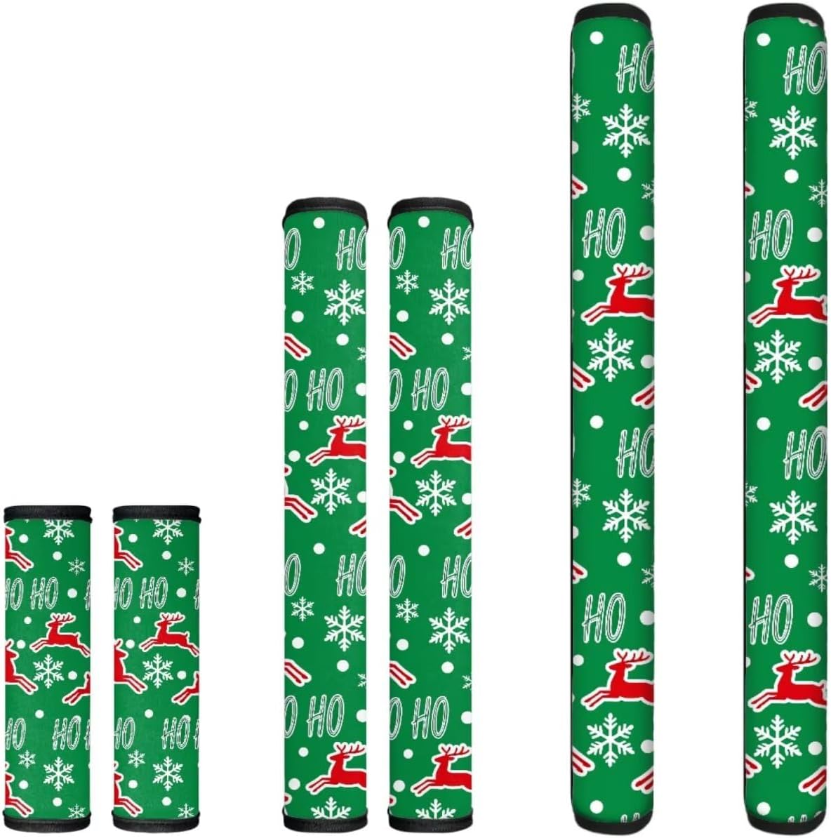 Kitchen Appliance Handle Covers: Made of polyester fabric, non-slip and wear-resistant. the material is stretchy on the width. refrigerator door handle covers are designed with hook&loop, which is firm and not easy to fall off Size: Refrigerator handle covers contain 2 PCS-5.3*12In + 2 PCS-5.3*6.1In + 2 PCS-5.3*16.1In cloth covers Keep Kitchen Clean: Fridge handle covers are designed to keep kitchen appliances handle off from stain, dirty kid hands, water drops and fingerprints Suitable For All Kitchen Appliances: it can be used on handle of fridge, microwave, oven, kitchen cabinet, dish washer and other appliances Washable and Reusable: Kitchen appliances gloves are machine washable or hand washable, environment-friendly. so even if you buy them as holiday decorations, they can still be used the next year Easy to Install: Refrigerator door handle cover set of 6, quickly install and remove, can be used as kitchen decorations for holidays such as thanksgiving, halloween, christmas, easter, new year etc.