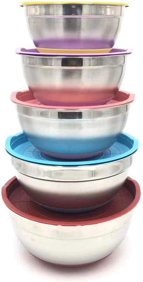 material: Made of food grade stainless steel, the lid is food grade pp, and odorless, safe to use.Exquisitely polished: The interior of the polished finish will keep the shine lasting and lasting, just like the new ! design: Due to deepened design, don't worry about splashing when playing eggs and stirring, the curved bottom is smooth, and there is no dead angle when cleaning.Versatile use: 7 different sizes, deeper basin type is very suitable as a storage bowl, fruit bowl, popcorn bowl, salad bowl, serving bowl, ingredient bowl and biscuit bowl! : for everyday use the family table, this multi-colour stainless steel bowl adds brilliance to your kitchen.SIZE :Diameter- 18cm; Depth - 9.5cmDiameter- 20cm; Depth - 9.8cmDiameter- 22cm ; Depth - 10.5cmDiameter- 24cm ; Depth - 11.2cmDiameter- 26cm ; Depth - 12cmDiameter- 28cm ; Depth - 13.3cmDiameter- 30cm ; Depth - 14cmUses: Suitable as a storage bowl, fruit bowl, popcorn bowl, salad bowl, serving bowl, ingredient bowl and biscuit bowl!ADVANTAGESDEEP EDGE - Deep and large bowl helps to contain more food and reduce splatter when mixingNON-SLIP BOTTOM - Silicone base keeps the bowl sit steadily when mixing, whisking and beating7 COLOR - Each color represent size, the color of lid correspond with the bottom for easy matching and findingAIRTIGHT LID - Plastic lid stay the strong seal to the bowl, for the airtight storage - Our bowl have a solid construction, they are unbreakable and rust-resistant for years of durabilityEASY CLEAN- Inside finished surface made the bowls release food and clean easilydinnerware sets with serving bowlsflatware and dish set bundl