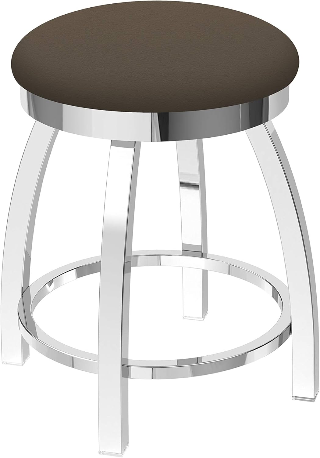 Customize your very own vanity stool with the help of the Holland Bar Stool Co. This Anodized Nickel Misha swivel vanity stool has a contemporary design. The seat ring conceals the swivel for a clean look. The frame is made from commercial quality 16 gauge, 1 3/4 inch tube steel with solid mig welded joints to guarantee strength and durability. The powder coated finish resists chips and scratches and ensures a long-lasting, rich appearance. The wood seats are 1 3/4 inch solid hardwood (oak or maple) and are dished for amazing posterior comfort, making sitting for minutes or hours a pleasure. The cushion seats are of the highest quality as well, utilizing a breathable, commercial grade vinyl or fabric. At the heart of the cushion is 2 1/2 inches of highly-dense, US made foam that provides maximum support and will not breakdown in a couple years. You won't find a higher quality stool on the market. If you are going to finish your counter, dining, desk, or vanity area - do it right, with a stool from the Holland Bar Stool Co. ** 5 year residential structural frame warranty ** Lifetime residential warranty 52 ball bearing swivel**Made In USA**