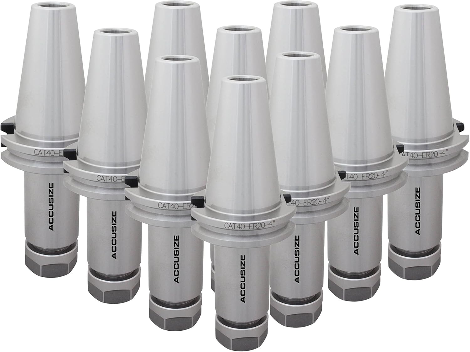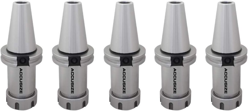 The Accusize Industrial Tools CAT40 V-Flange Collet Chuck for ER32 Collets, model 1601-0015, is a premium tool holding system designed for high-speed CNC machining. Rated for up to 8000 RPM, this collet chuck is built for efficiency and precision, enhancing productivity in a broad range of machining operations.Crafted from high-grade alloy forged steel and hardened to HRC 52-56, the chuck demonstrates exceptional strength and wear resistance. This robust construction ensures reliable performance under the demanding conditions of continuous, high-speed use. The chuck is specifically designed for ER32 collets, allowing for a versatile range of tool sizes from 3/32" to 25/32", thereby enhancing its utility in various machining applications.Precision is a hallmark of this collet chuck, with a 2.76" projection length providing a stable and accurate tool holding capacity. This feature is crucial for maintaining accuracy and consistency during machining operations. The standardized CAT40 taper, coupled with a 5/8-11" draw bar thread, guarantees compatibility with CAT40 spindle systems, ensuring a stable and reliable connection for every operation.In conclusion, the Accusize Industrial Tools CAT40 V-Flange Collet Chuck is an essential asset for any CNC operation, providing a perfect blend of high-speed capability, robust construction, precision, and versatility. This tool holding solution is bound to elevate the standards of performance and reliability in any high-demand machining environment.