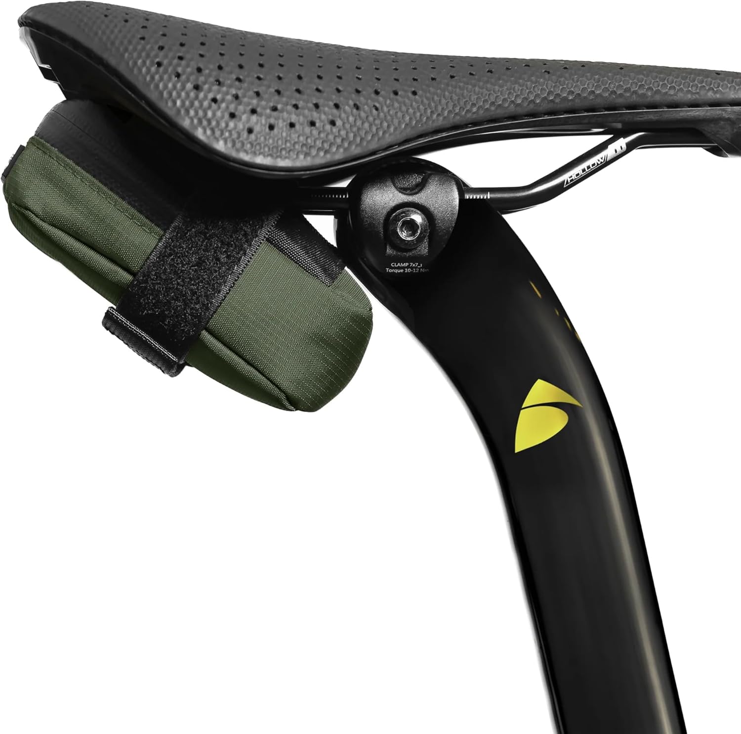 Meet the ALMSTHRE Signature XL Saddle Bag, designed to provide expanded under-seat storage for cycling essentials. This bike saddle bag is constructed from premium ripstop materials and features reinforced Ride Armor wear points along with a waterproof zipper for durability during regular riding conditions. With dimensions of 6.5" L x 3" W x 3" H (1.0L), the Signature XL Saddle Bag is intended as a catch-all storage solution for the gear that typically lives under your saddle, including a phone, tools, CO₂ cartridges, tubes, and credit cards. Internal organization includes a dedicated phone sleeve, CO₂ and tool loops, and a high-visibility liner to help keep items easy to locate. The simple seat rail mounting strap allows for quick installation and a secure fit. Additional hand pump and rear light mounting loops provide compatibility with common cycling accessories. Weighing 150 grams, the Signature XL balances increased storage capacity with durable construction. The ALMSTHRE Signature XL Saddle Bag is designed for cyclists seeking reliable, organized under-seat storage for longer rides and expanded gear needs.