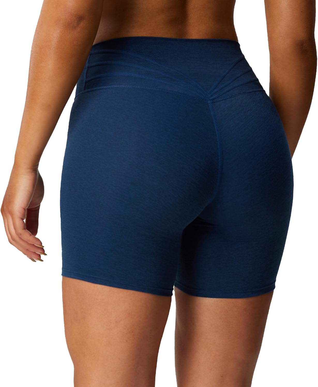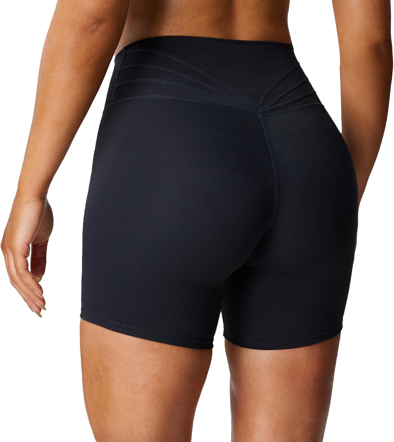 • These womens biker shorts designed in our customized amazing breathable buttery soft fabric, moderate compression, created with no front seam and muti-seam design on the waistband, the back seams are SUPER flattering