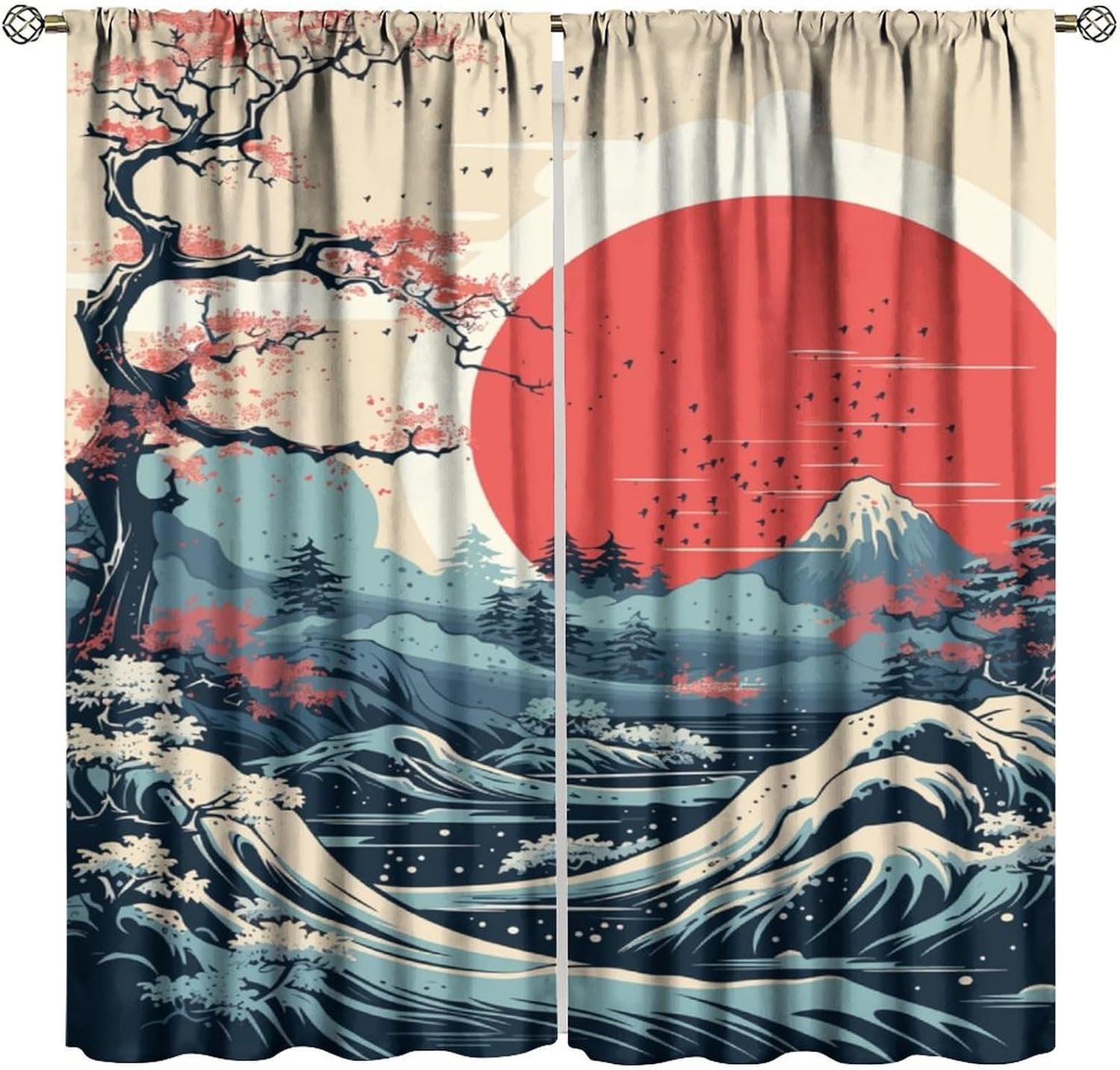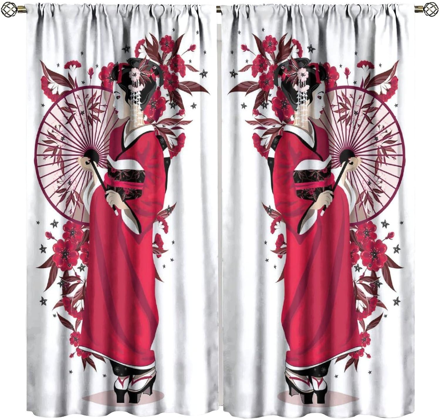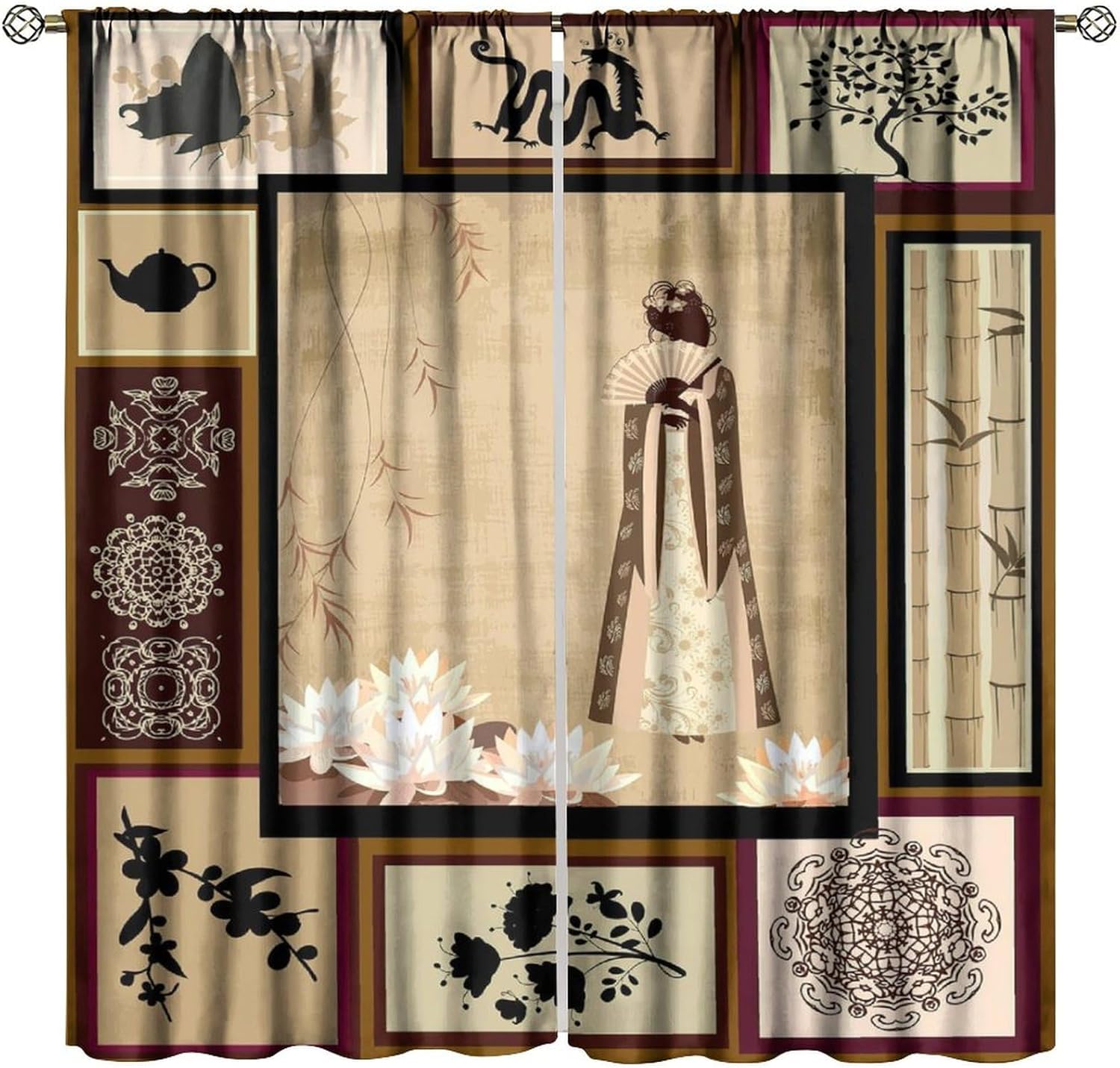Curtains Package Includes:Blackout Window Curtains 2 panelsSize:1 panel measures 21 (W) x 45(L). The pair of 2 panels together measures 42" (W) x 45" (L) .1 panel measures 21 (W) x 54(L). The pair of 2 panels together measures 42" (W) x 54" (L) .1 panel measures 21 (W) x 63(L). The pair of 2 panels together measures 42" (W) x 63" (L) .1 panel measures 27.5 (W) x 63(L). The pair of 2 panels together measures 55" (W) x 63" (L) .1 panel measures 31.5 (W) x 63(L). The pair of 2 panels together measures 63" (W) x 63" (L) .1 panel measures 31.5 (W) x 72(L). The pair of 2 panels together measures 63" (W) x 72" (L) .1 panel measures 36 (W) x 63(L). The pair of 2 panels together measures 72" (W) x 63" (L) .1 panel measures 42 (W) x 84(L). The pair of 2 panels together measures 84" (W) x 84" (L) .1 panel measures 26 (W) x 84(L). The pair of 2 panels together measures 52" (W) x 84" (L) .Various sizes are available.About the material:Polyester fabricNo chemical coating, no peculiar smell, healthier and safer for people, especially babies and kids. About the function:1:It can block more than 85% of the sunlight and provide privacy protection 2:Perfect for bedroom, living room, kitchen, cafe, office, bathroom, dining room, dorm, nursery, outdoor patio etc. 3:It is also one of the best gifts for your family, friends, relatives or yourself.Warm Notice:1:The pattern is only 1 side and the other is white.2:Due to manual measurement, please kindly allow a 1-2 cm discrepancy.