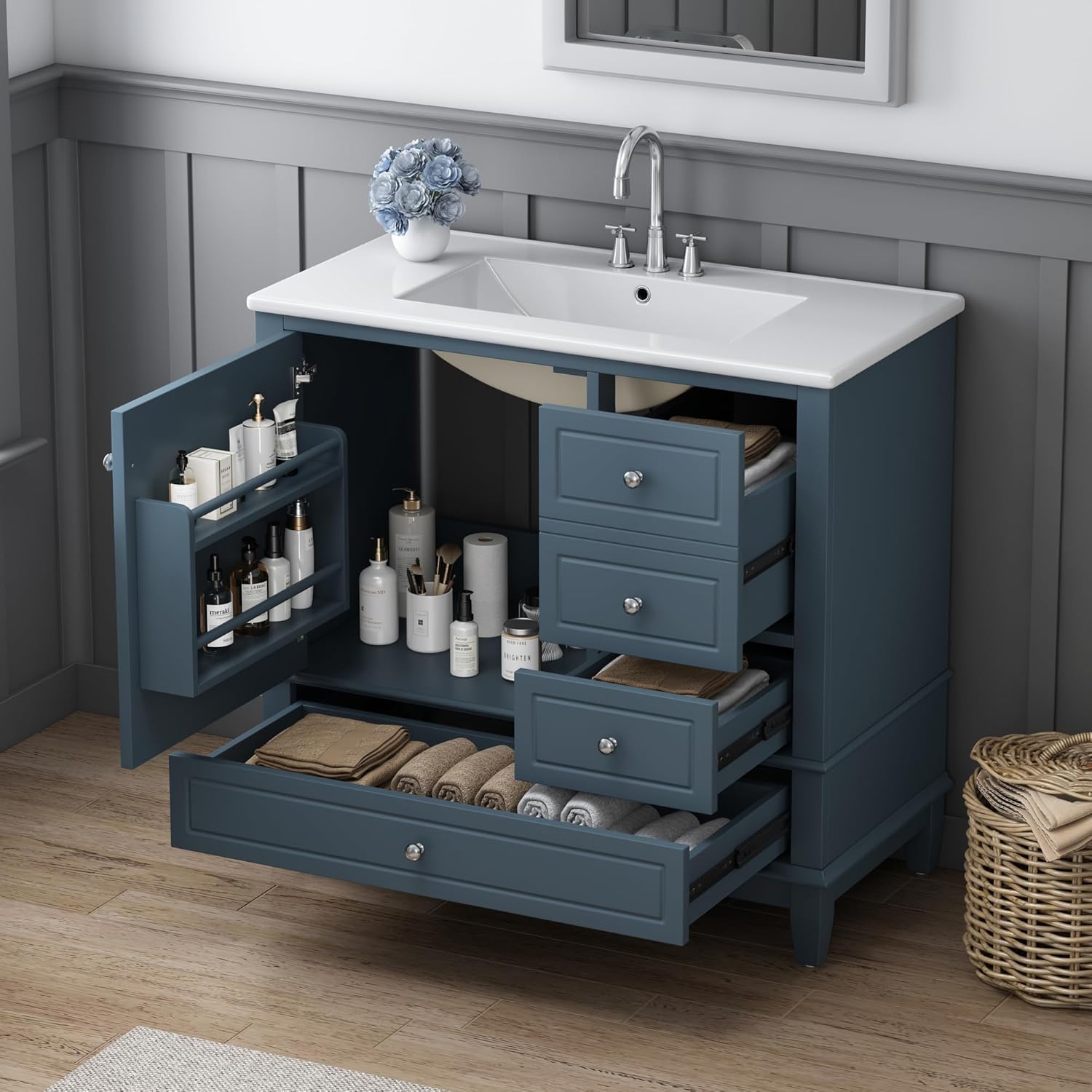 | Item Type Name | Bathroom Vanity with Ceramic Sink 24 Inch, Cabinet with One Door and Three Drawers, Soft-closing Door, Solid Wood Legs, Black |