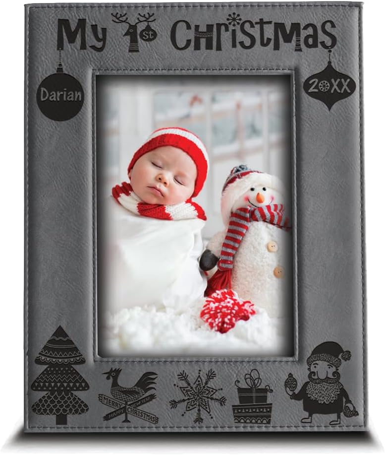 ❤️A Babies first Christmas is always one to be remembered, Create a lovely keepsake that you can cherish as they grow older. Engraved leather frame with special edition "Mirror Acrylic Piece Integrated" it's looks unique and really special for your lovely home ❤️Overall, an engraved baby's first Christmas picture frame is a heartwarming and enduring gift that captures the magic and significance of a child's first holiday season, providing a tangible way for families to remember and celebrate this special time for years to come.