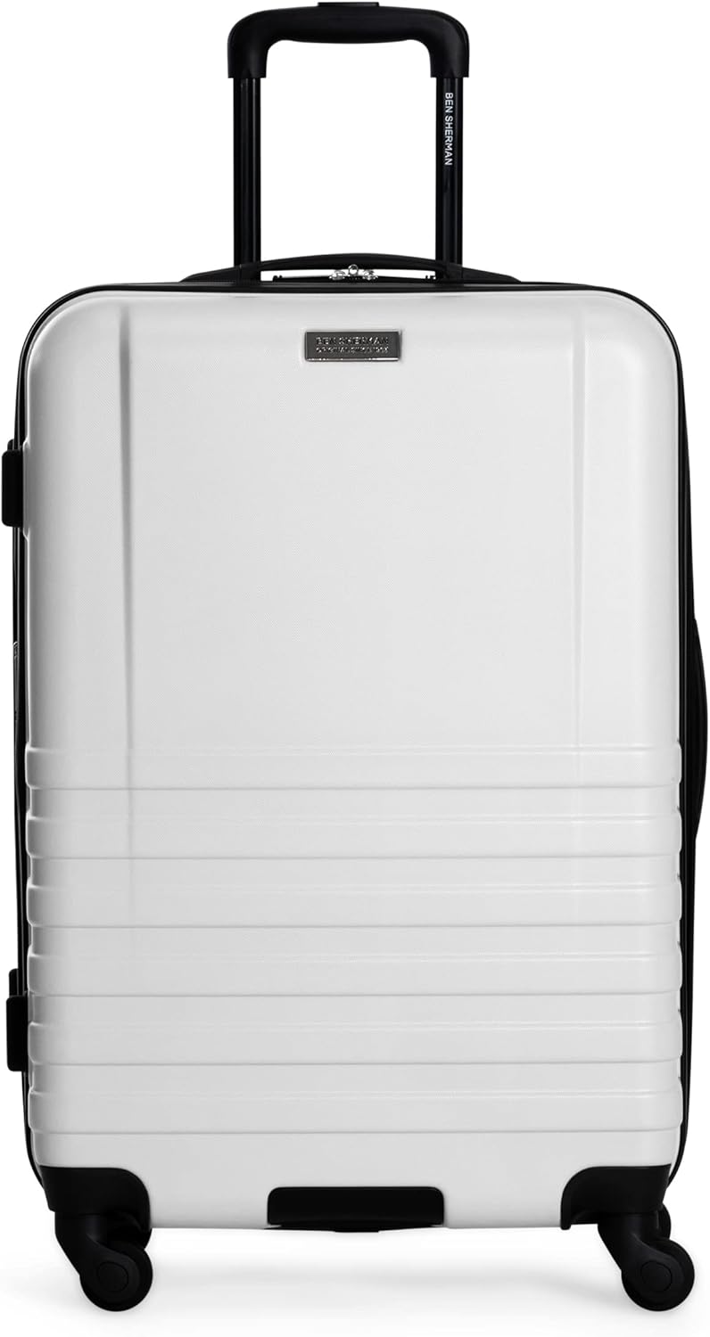 Pack your essentials for an overnight trip or a weekend getaway Inside this durable, hardside 4-wheel spinner 28" Checked-size suitcase from Ben Sherman "Hereford" Luggage collection. 4-wheel spinners that allow for 360-degree rotation, expands an extra 2.0 inches Lightweight construction. Durable ABS hard-shell exterior, top handle Telescoping trolley handle Fully lined, rip-proof interior with a stylish modern pattern The main compartment in the interior features clothing compression straps to keep your belongings organized and a hanging zipper pocket for personal belongings Side handles and side feet on 24 and 28inch luggage Front lid features a U-shaped zipper panel for double-sided packing and a full-length mesh zipper pocket This hard-side carry-on size meets most U.S based airline carry-on size requirements and fits in most airline overhead bin compartments 10-year limited warranty