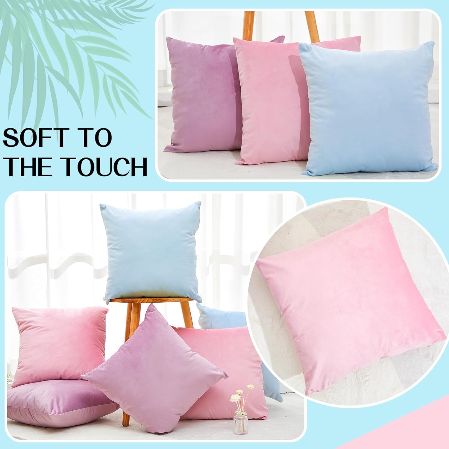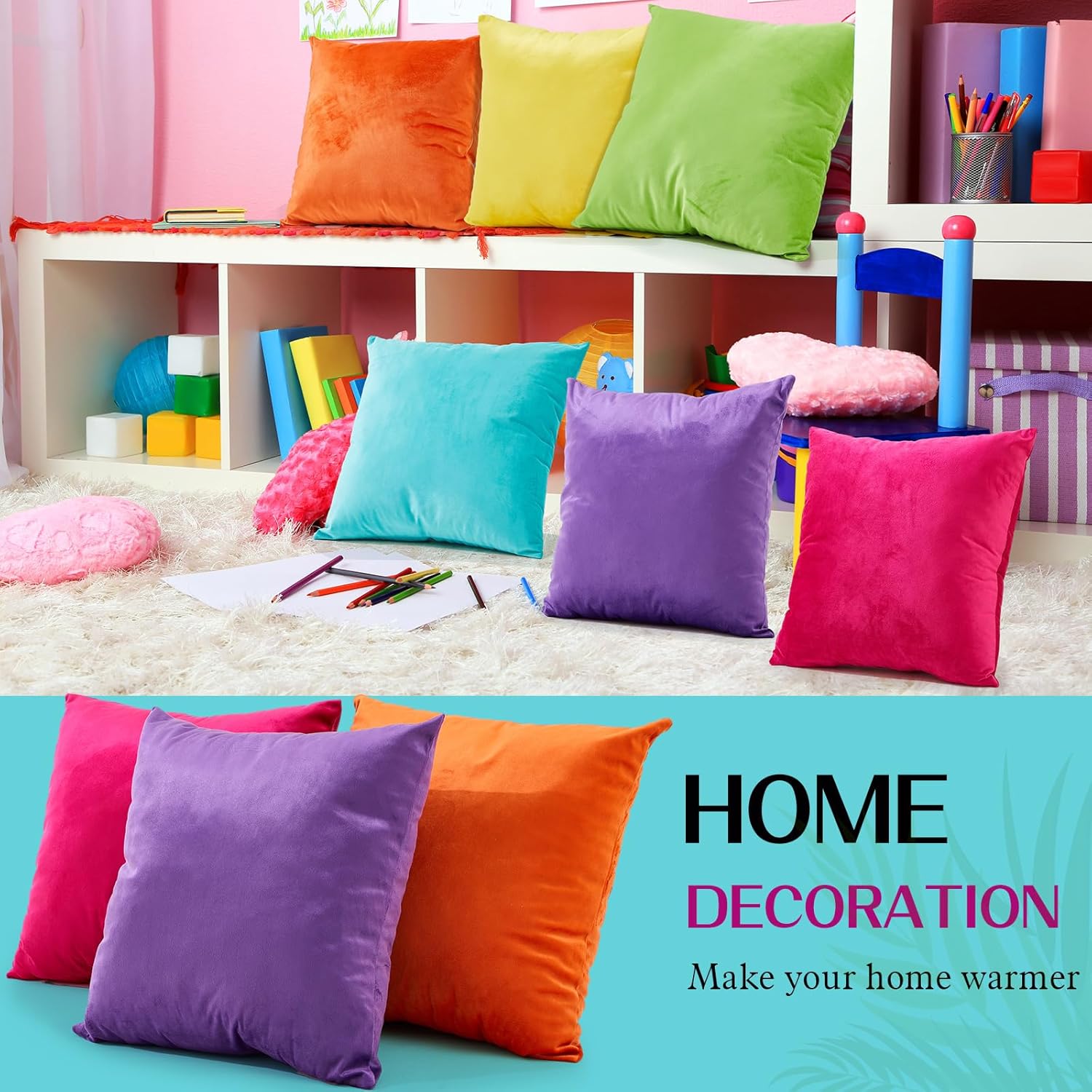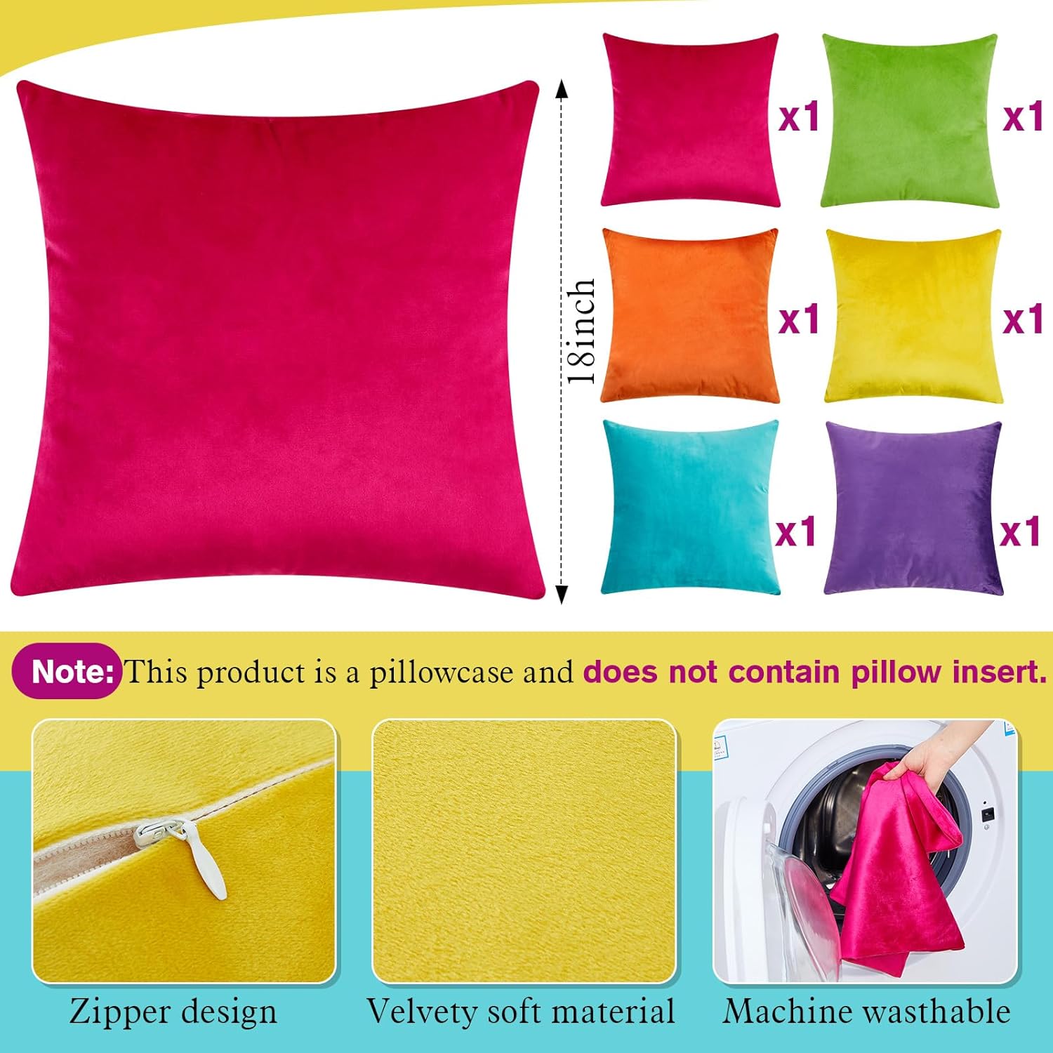 Features: Due to their simple design, storing these velvet pillow cases is easy when not in use. Their lightweight and foldable nature makes them convenient to store, taking up minimal space in your linen closet. Measuring 18 x 18 inches, this decorative pillow case is big enough to make a statement but still compact, ensuring they'll look elegant on the sofa, bed, or chair. Specifications: Material: velvet Color: teal, beige, orange, yellow Size: about 18 x 18 inches Package includes: 8 x Throw pillow covers Notes: Manual measurement, please allow slight errors on size. The color may exist a slight difference due to different screen displays