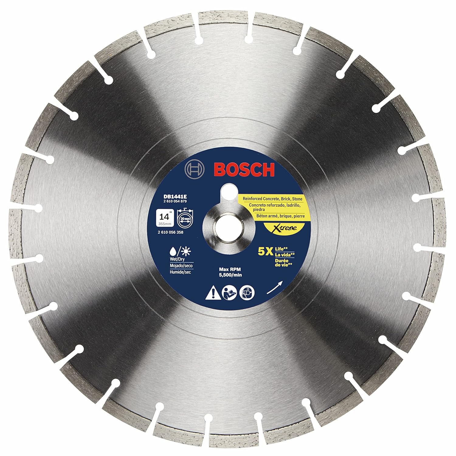 This Bosch Xtreme Segmented Rim Diamond Blade delivers Xtreme fast cutting and 5X life over standard concrete blades. It features Bosch's tensioned blade core, segment design and high-quality diamonds. The blade's tensioned core is engineered to ensure that the blade delivers smooth cuts, with lower vibration to eliminate wobble. With an optimized segment height that provides up to 5X life in reinforced concrete, stone and brick. Each segment is laser-welded to the steel core.