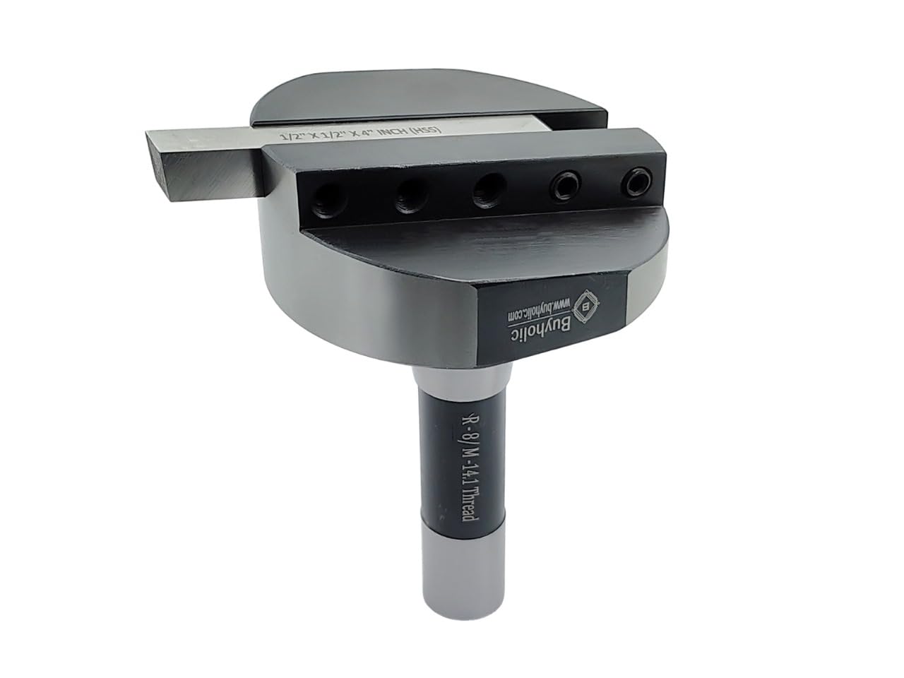 A fly cutter is a precision milling tool widely used in machining operations, especially for creating flat, smooth surfaces on a workpiece. It is designed for use with milling machines and is most commonly employed in facing operations, where the objective is to produce a flat surface perpendicular to the cutter’s axis of rotation. Key Features: Type: Fly Cutter Diameter: 4 inches – Indicates the size of the cutter head. Ideal for covering a broad surface area in a single pass. Cutting Edge: Single cutting edge – Ensures focused material removal and excellent surface finish. Functionality: Designed specifically for milling operations including facing and surface milling. Tip Options: Carbide Tip (Indexable – TNMG16): Material: Carbide – Offers high hardness, wear resistance, and longer tool life. Type: Indexable – The TNMG16 carbide insert can be rotated or replaced when dull, maintaining cutting efficiency and reducing downtime. Finish: Excellent for smooth finishes on hard or abrasive materials. Efficiency: Well-suited for high-speed and high-efficiency operations. HSS Tool Bit Option: Material: High-Speed Steel (HSS) – Provides toughness and versatility. Use Case: Ideal for general-purpose machining, especially when working with softer materials or when a sharper cutting edge is required. Resharpenable: Unlike indexable inserts, HSS tool bits can be resharpened multiple times, making them cost-effective for lower-volume production. Applications: Facing operations Surface milling Flat surface machining Suitable for both roughing and finishing tasks depending on tip choice Advantages: Versatile Design: Accommodates both carbide inserts and HSS tool bits, giving machinists flexibility based on the material and finish requirements. Smooth Surface Finish: Whether using carbide or HSS, the cutter is capable of delivering a clean and flat surface finish. Wide Compatibility: Fits standard milling machine setups. Large Surface Coverage: The 4-inch diameter allows efficient machining over larger workpiece areas in fewer passes. This fly cutter is a robust and versatile tool ideal for both professional machine shops and maintenance operations. Whether you prefer the indexable TNMG16 carbide inserts for productivity and longevity, or the HSS tool bit for flexibility and ease of resharpening, this cutter is a reliable choice for all your flat surface machining needs.