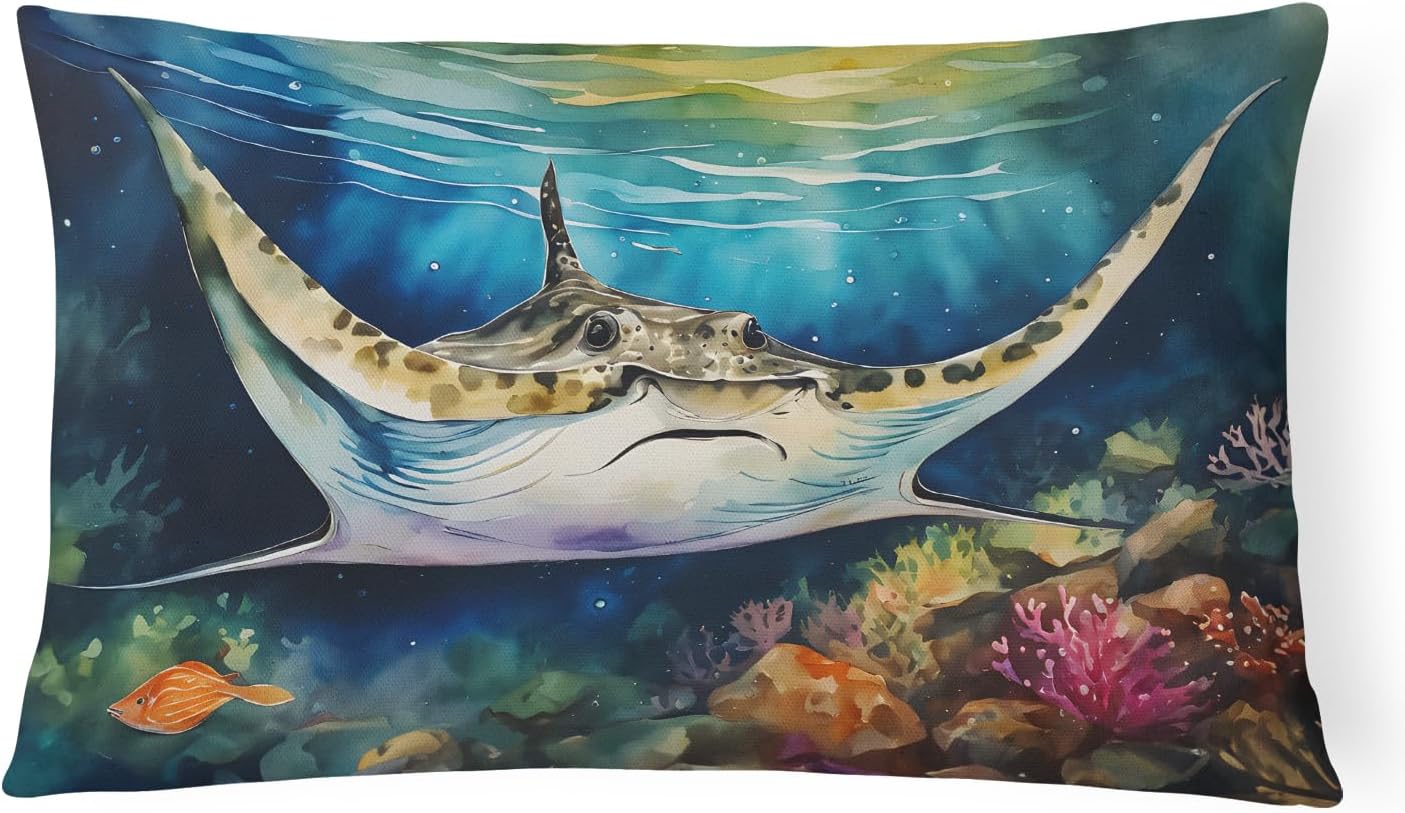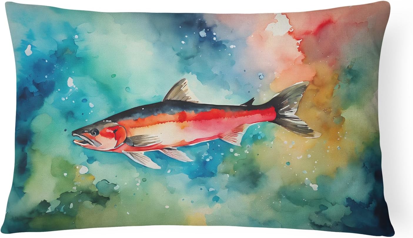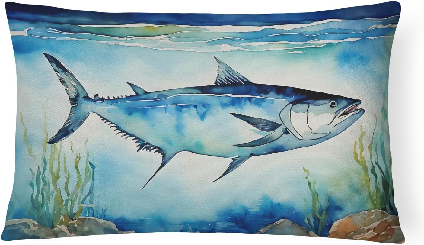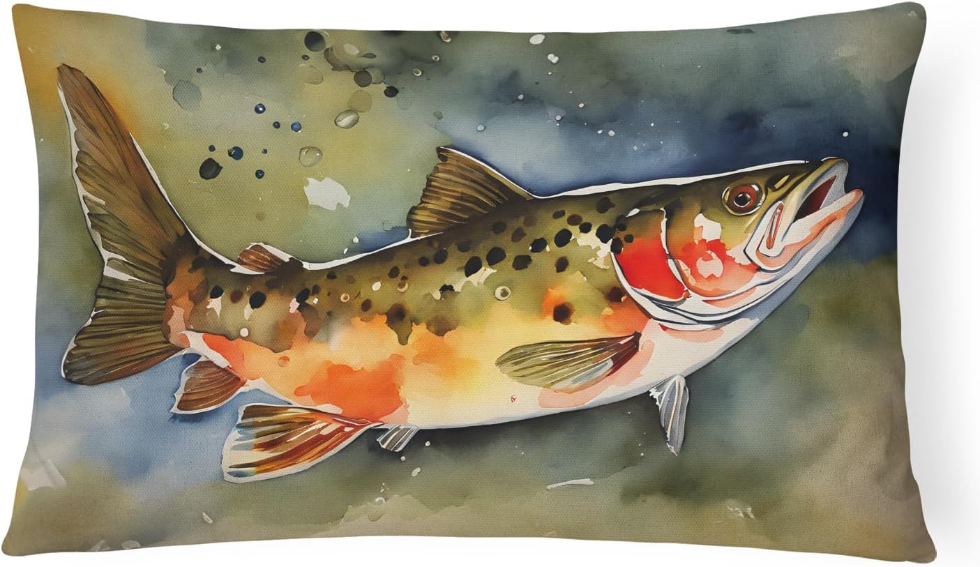 Throw Pillow featuring breed specific Largemouth Bass artwork. Revitalize your outdoor or indoor living space with Caroline's Treasures 18x18 Fabric Decorative Pillow. With a generously sized dimension of approximately 18 inches by 18 inches, this pillow makes a comfortable and aesthetic addition to any seating area. Made from a unique, water-resistant material developed by Caroline's Treasures, the pillow sham is 100% polyester fabric that's durable and ready to weather any condition. Its vibrant, full-color artwork will not fade over time as it is dyed with color-fast dyes. Whether you place it on your patio furniture, porch, veranda, or indoor couch, its soft canvas fabric ensures a cozy experience. The pillow is handcrafted in the United States, featuring a sham created from three pieces of fabric and a polyester insert for enduring shape and overstuffed comfort. Despite being robustly built to endure the outdoors, it is as soft and snug as your favorite indoor cushions. Please note, as all our pillows are handmade, sizes may vary slightly, adding to the charm of this unique decorative item.