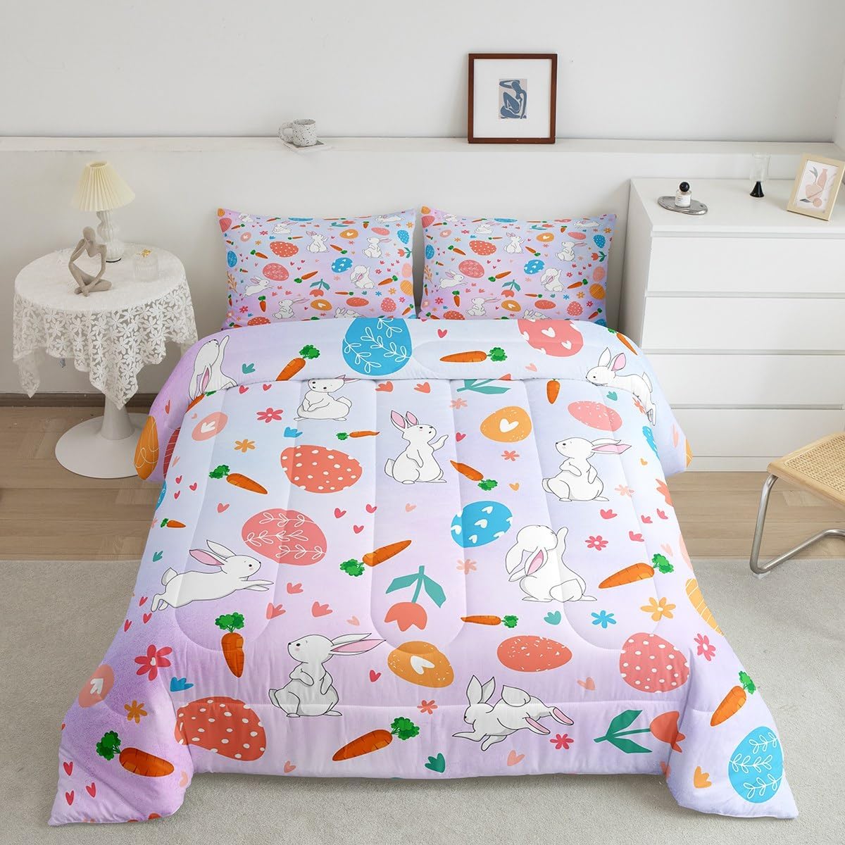 Best blessings: Makeover your bedrooms every season with our Comforter sets. Perfect item for your room, girls boys youth room, master bedroom. Also can order it for your mom, dad, sister, brother, grandma, wife, husband, daughter, son and all other beloved. Size Information: 1 x Twin size down comforter 68"W x 90"L, 1 x quilted pillow case 30"W x 20"L, 2pcs. 1 x Full size down comforter 79"W x 90"L, 2 x quilted pillow cases 30"W x 20"L,3pcs. 1 x Queen size down comforter 90"W x 90"L, 2 x quilted pillow cases 30"W x 20"L,3pcs. 1 x King size down comforter 104"W x 90"L, 2 x quilted pillow cases 36"W x 20"Lx,3pcs. Useful and practical: A luxurious product for homes, dorm rooms, hotels, guest rooms. Practical to use for being polyester, feels like cotton which is super soft and breathable. No chemicals used, No dye substance harming the health of you or your family. Unique design: Vivid Colors won't fade thanks to new 3D digital printing methods. These unique designs match well with various color palettes of your rugs, curtains, headboard, furniture, and all other decor accessories. Personalized: As manufacturers of digital printed home textiles, we follow current trends and bring you the latest home fashion. You can give it to your family or friend, relative or boyfriend girlfriend, or to yourself, the item should be interesting and authentic. Note: Machine washed in cold water. Do not bleach, Tumble dry low. The Bedspread and Pillow Shams are printed on the Front Side Only.