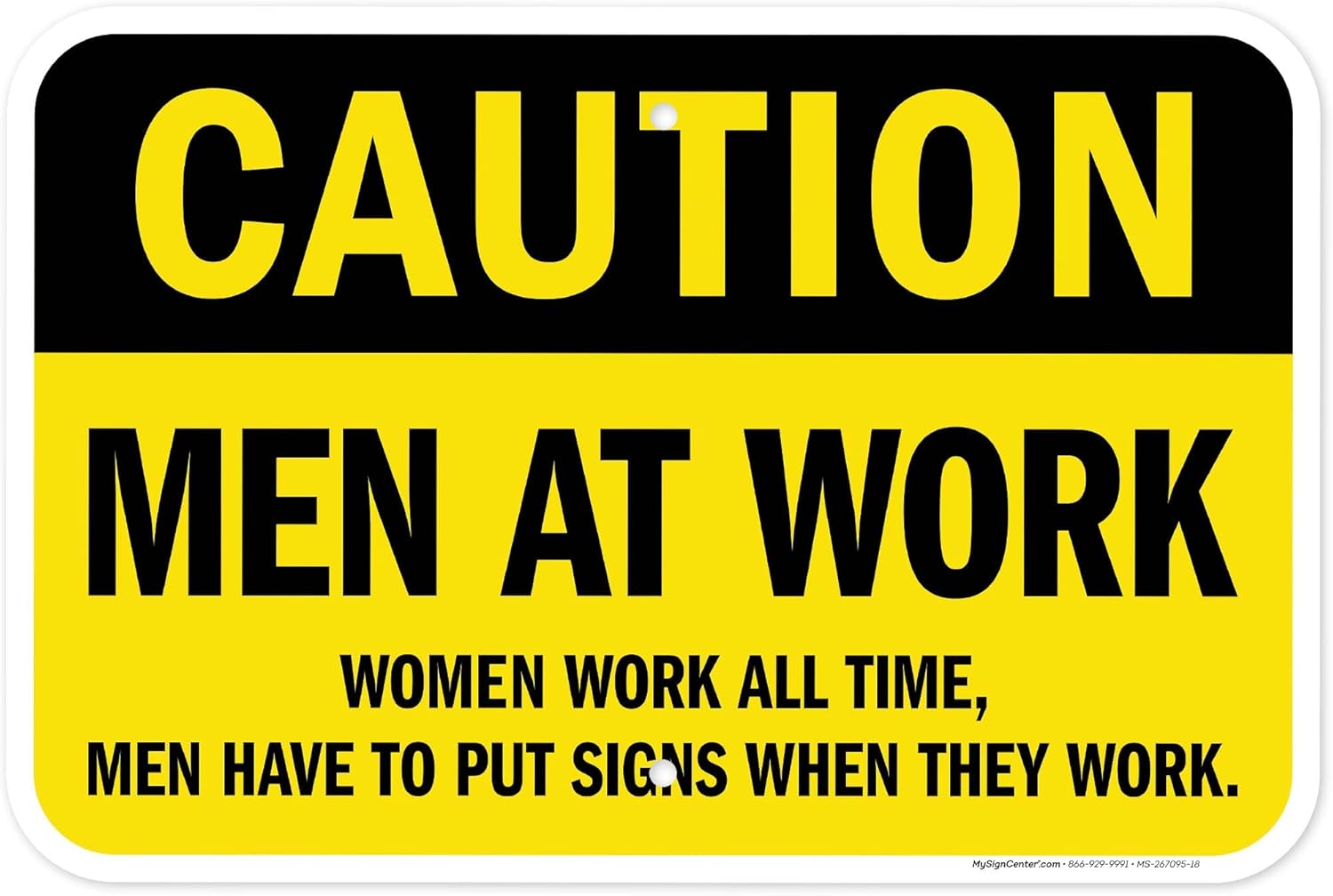 Caution Men at Work Women Work All The Time Men Have to Put Up Sign, 12x18 Inches, 3M EGP Reflective .063 Aluminum, Fade Resistant, Made in USA by My Sign Center