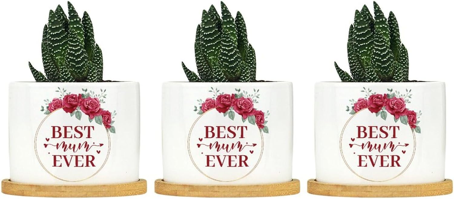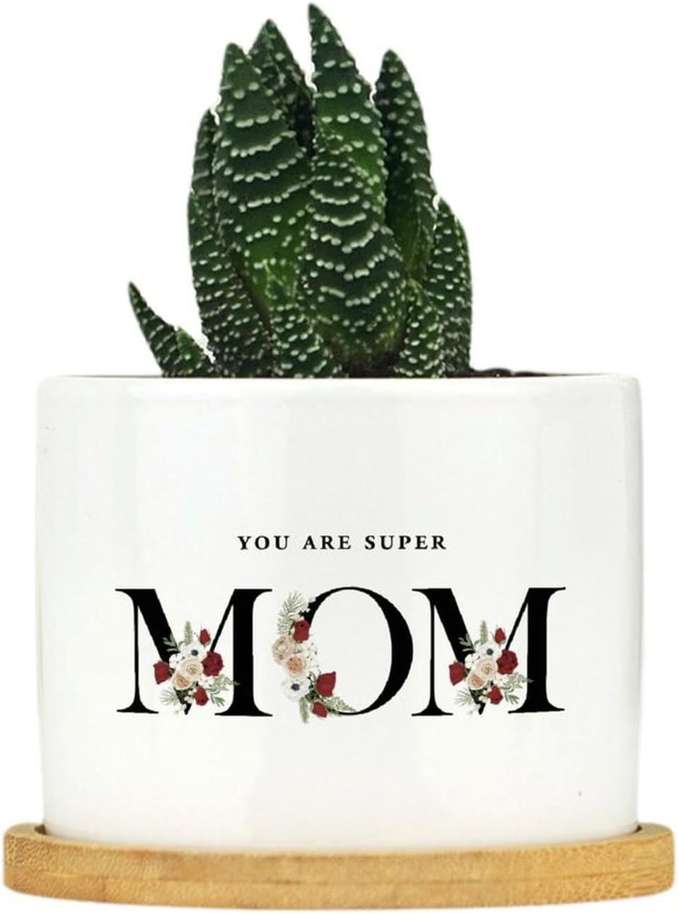 This flowerpot is made of simple white porcelain, with fashionable lines and design. Will make people's eyes bright when it is decorated at home, and it will not lose its sense of luxury when it is given as a gift. Perfect for decorating coffee tables, windowsills, desks, and other areas in the bathroom, bedroom, office, or dorm room. Housewarming parties, end-of-year gifts, Birthdays, and more, showing your love and care. Using high-quality white porcelain, elegant, cute, simple, and environmentally friendly. Equipped with bright patterns and text, you can also freely design and customize your favorite patterns and proverbs. This ceramic planter features a useful drainage hole. It comes with a bamboo tray to prevent water spillage and provides an elegant display for your plants. This is the perfect gardening gift, whether your mom, grandma... is a gardener or a new plant lover, she will appreciate these gardening gifts as a thoughtful way to bring some plants into her life Way.