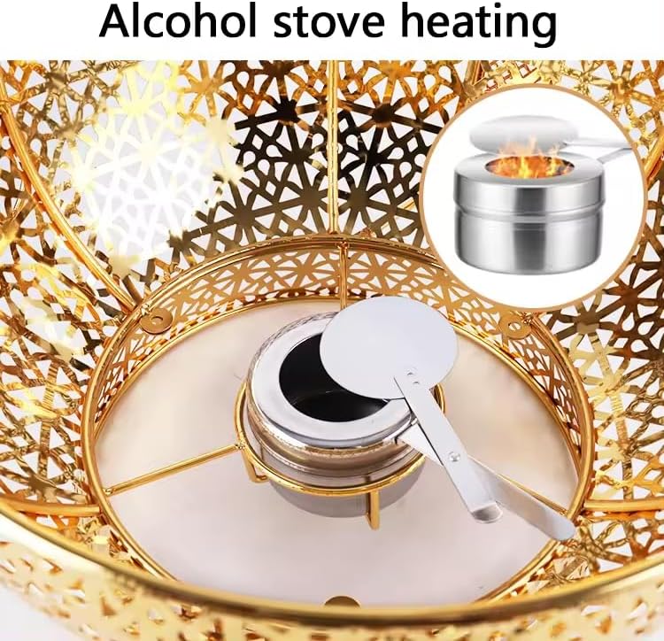 ✔Key FeaturesEnergy Saving: It's powered by solid alcohol without plugging in, which is low-carbon, energy-saving, and convenient to use indoors and outdoors such as picnics, hiking, and parties.User-friendly Design: The dust-proof lid with a handle allows for easy pick-up and helps heat preservation. In addition, the top hook can hang the lid to prevent the lid from missing, save space, and keep the lid clean.Easy to Clean: The stainless steel material, smooth surface, and detachable design allow you to simply clean it with a wet cloth, water, and detergent.Alcohol Fuel Can: This alcohol fuel can with a handle allows for easy movement without hurting your hands, and you can rotate the lid to control the firepower by changing the size of the opening, and extinguish the fire by closing it.Sturdy Support Frame: It makes the chafing dish stand stably without tipping over. In addition, the space left at the bottom plays a role in ventilation, making it more secure to use.✔SpecificationsMaterial: Iron, Stainless SteelAssembly Required: YesFood Pan Capacity: 8LProduct Overall Height: 75cm/29.5inLid Diameter: 40cm/15.75inSupport Frame Height: 65cm/25.6inFood Pan Diameter: 38cm/14.96inPackage Size: 41*41*23.5cm/16.14*16.14*9.25inGross Weight: 4.6kg/10.14lbs✔Package Included4* Support Frame 4* Lid4* Lid Handle4* Food Pan4* Water Pan4* Alcohol Fuel Can✔Notes1. Please check the size carefully before ordering.2. It is used to keep food warm and cannot be used as a cooking tool. It is forbidden to put the product directly on the gas or induction stove.3. Please note that fuel is not included. It is recommended to add solid alcohol into the fuel can, and you need to prepare solid alcohol for heating yourself.