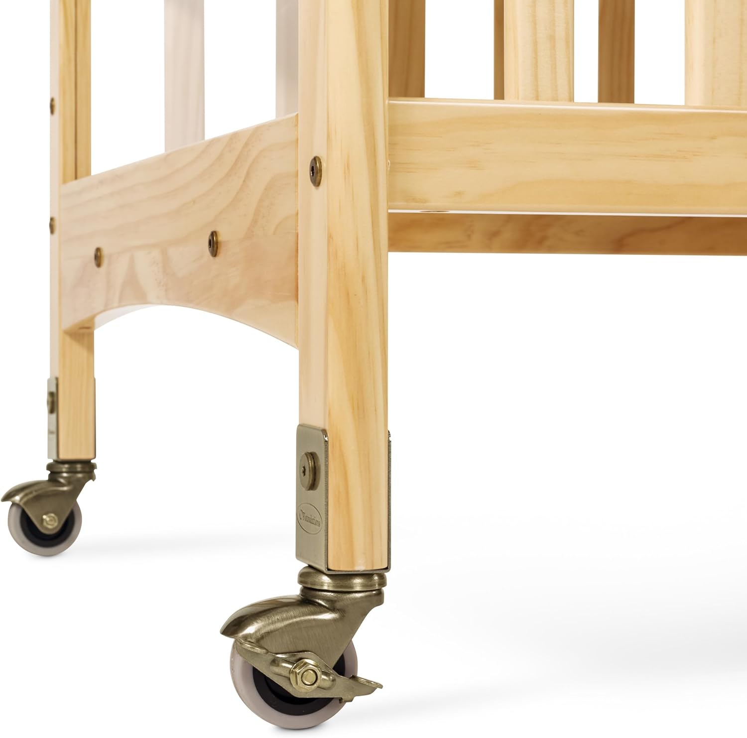 The Child Craft Avery Compact SafeAccess Child Care Crib in Natural offers superior style and function. Features a full-length SafeAccess front and Clearview end panels which allow for easy viewing of infant. SafeAccess infant access system offers a safe alternative to infant access and allows caregivers to easily access infants while minimizing back strain. Innovative hinging and latching system eliminates pinch point hazards to infants. High-quality construction includes mortise and tenon joinery and high strength fasteners for superior durability. Compact, portable size allows the crib to fit through all doors for easy evacuation. Lower profile and adjustable, 2-position mattress board provide easier accessibility to infants. 3” ultradurable mattress with 24” x 38” sleeping surface is included. Five-year warranty on the crib with lifetime warranty on steel frame, casters, and hardware. Tools and instructions for assembly included. Assembled dimensions: 40” High x 26.25” Wide x 39.13” Long