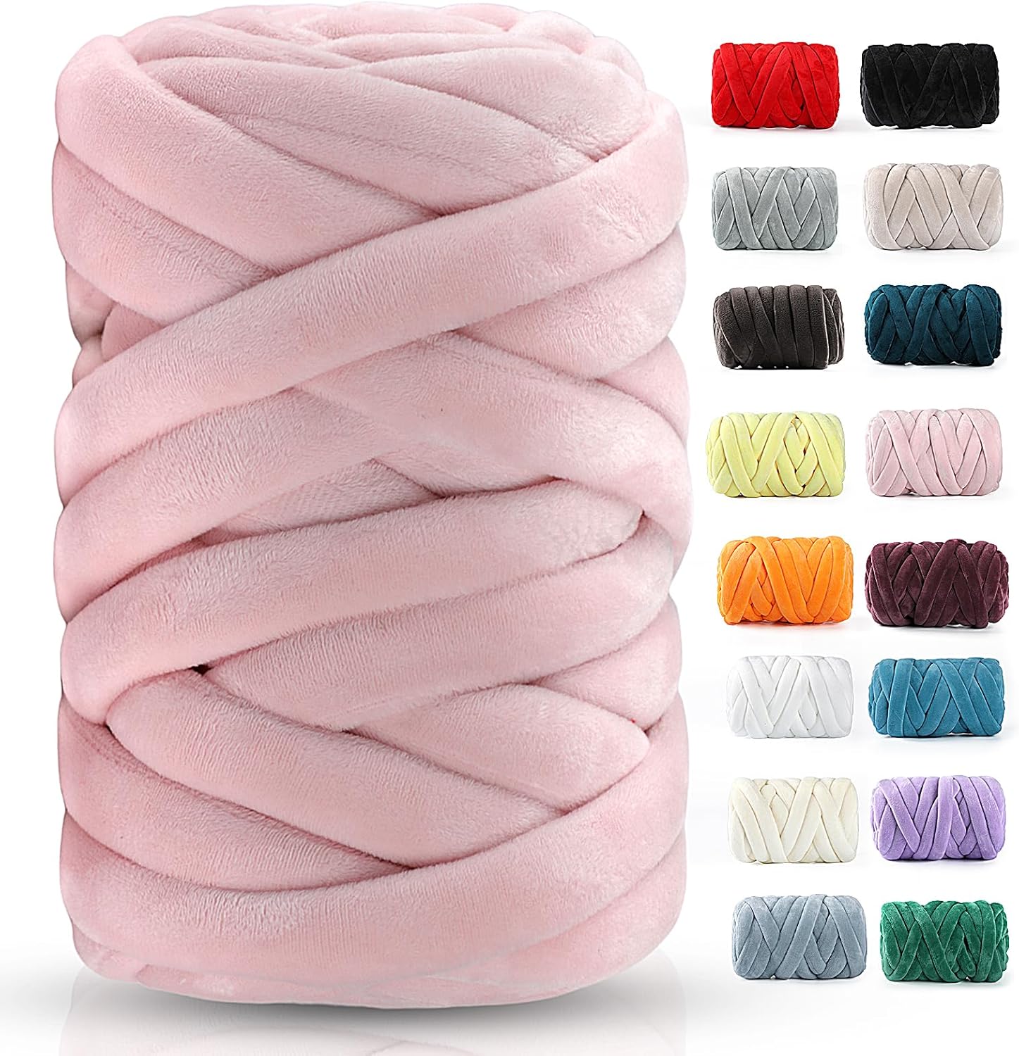 knitting and finger knitting, allowing you to create stunning, professional-grade blankets, chic home decor, and trendy accessories in just a few hours. Yes, you read that right – finally, a crafting project you can start AND finish in a single weekend! SNUGGLE-LEVEL SOFTNESS, GUARANTEED. Imagine wrapping yourself in a cloud. That's the luxurious feel of our premium yarn blend. Wrapped in a plush velvet exterior and engineered with 5% Spandex for superior flexibility, every creation is incredibly soft to the touch and gentle enough for sensitive skin and beloved pets. It’s the perfect choice for crafting the coziest weighted blankets for movie nights, plush pet beds for your furry family members, and dreamy baby blankets you’ll cherish forever. CRAFT SMARTER, NOT HARDER: BUILT TO LAST AND LOOK BEAUTIFUL. We believe your beautiful creations should last a lifetime of snuggles, not just a few washes. Thanks to our unique 95% Polyester & 5% Spandex blend, your projects have incredible stretch and memory, meaning they bounce back to their original shape and resist sagging. Plus, care is a total breeze – simply toss your masterpiece in the washing machine on a cold cycle, and it comes out looking perfectly clean and vibrant, every time. No special handling required! YOUR NEXT FAVORITE HOBBY STARTS HERE. NO EXPERIENCE NECESSARY! This is the ultimate beginner-friendly craft. If you can use your arms and fingers, you can create something amazing. No needles, no hooks, no complicated patterns. Just pure, relaxing, creative fun. It’s the perfect way to unwind after a long day, enjoy a fun family activity with the kids, or even host a unique crafting party with your friends. THE PERFECT GIFT OF COZY CREATIVITY. Whether you’re treating yourself or surprising your crafty best friend, Yarn is a gift that keeps on giving. Each skein is 0.66lb (300g) and approximately 18.59 yards long. QUICK PROJECT GUIDE: - A Generous Throw Blanket (50" x 60"): 4-5 skeins - A Plush Pet Bed: 2-3 skeins - A Stylish Market Bag or Pillow: 1-2 skeins - A Chunky Scarf or Wall Hanging: 1 skein Ready to transform your space and unleash your inner maker? Ready to transform your space and unleash your inner creator? Join us now for the fastest, most satisfying crafting experience of your life! Get more yarn, easier and more stylish. Start your chunky knitting journey today!