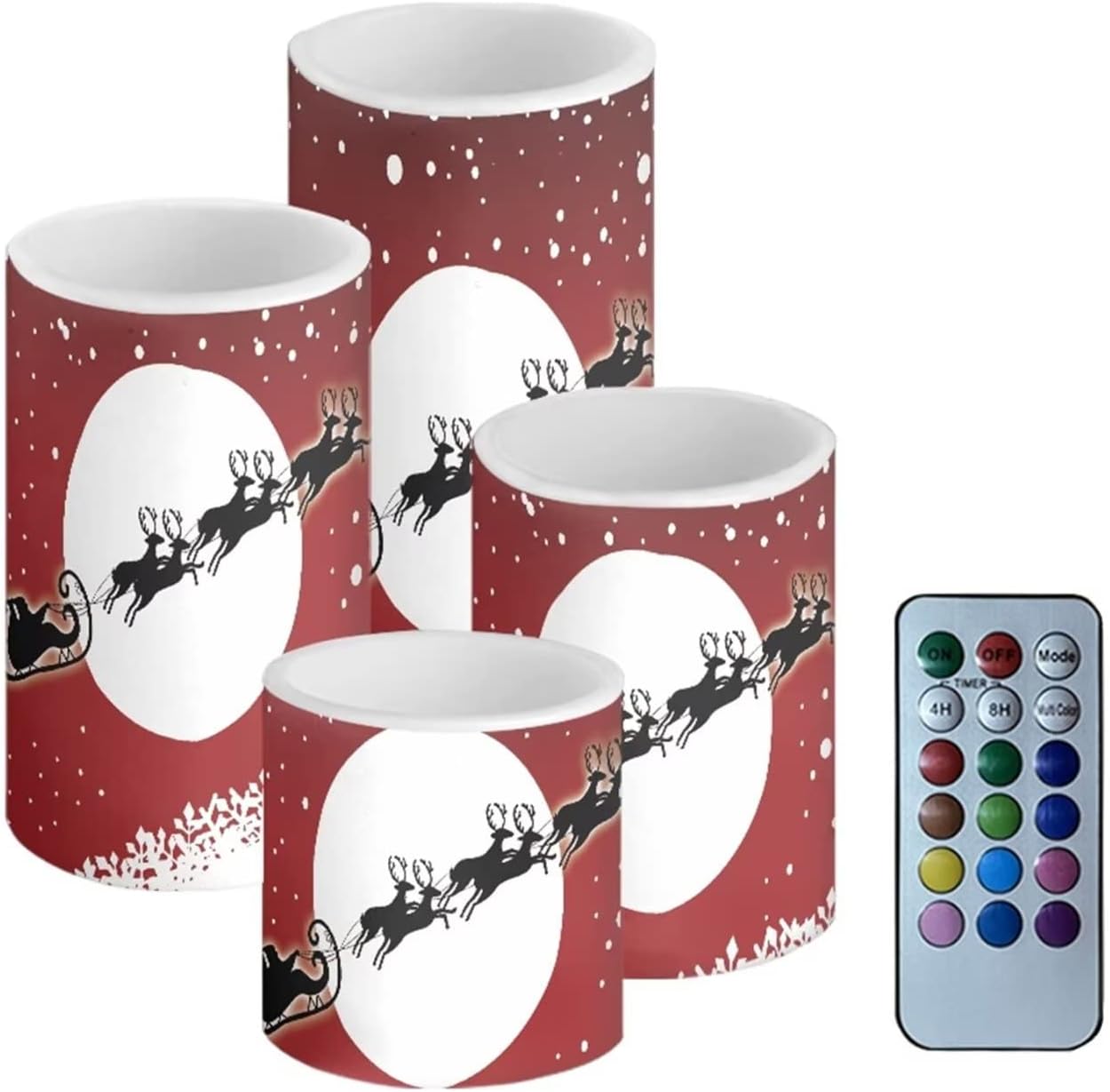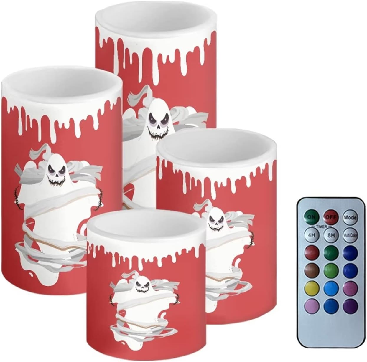 4 Packs Flameless Candles Sets(not battery include) Material:Premium frosted plastic. Color: ivory color Candles comes in 4 different size: --Diameter 7.5cm/3inch Height 7.3cm/2.9inch --Diameter 7.5cm/3inch Height 9.7cm/3.8inch --Diameter 7.5cm/3inch Height 12cm/4.7inch --Diameter 7.5cm/3inch Height 14.5cm/5.7inch Features: --warm yellow tealights with miniature flicker --turn on/ off manually. --battery operated by 3 x AAA batteries. (Batteries not Included) --these flameless candles set is long lasting,buy them once, enjoy them for years to come! --suit for any spaces,any weather,indoor or outdoor. --4 pieces battery candles,create a romantic atmosphere and sparks interest for wedding,parties,home,birthday,festival and other occasions. without the worry of fire hazard, wax melting or allergic scent, warmer and peaceful atmosphere will make you enjoy your event.You will love it. Using Tips: 1.When the battery is too weak for normal power supply, your flameless candle will dim light, please turn off the candle and replace the battery. 2.Do not mix old or new batteries. 3.when not in use for a long time, please remove the battery from the LED candle. Note: 1.Due to the different camera or lighting environment, please allow a little chromatic aberration. 2.Due to different measurement methods, please allow an error of 1-3mm. Thank you! 3.Thank you for your business! If you have any questions, please don't hesitate to contact us directly.