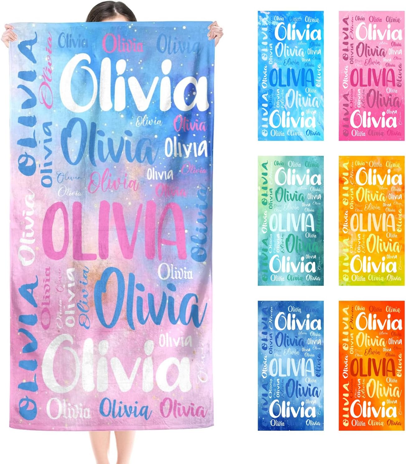 Custom Step1.Click the button customize now.2.Input the text you want to write on the custom beach towel.3.If you have any questions, please send us a message.Towels for bathroomThese beach towels are perfect for various purposes. Take it with you on vacations, camping, travelling, business trips, or wherever indoors or outdoors. With versatility, durability, and absorbency, these towels are made to last you a long time and is easy to care for.MICROFIBER FABRICMade from ultra soft, lightweight, all-purpose pure microfiber fabric that is super absorbent and long-lasting. With meticulous stitching and finishing details, it's a high-quality constructed and very practical beach towel the whole family can enjoy in the summertime.DIY PRINTINGThis quick dry beach towel use great after a hot shower or when coming out of the surf and custom names make these beach towels eye catching, making your beach, swimming pool, bath time much more personalized.WASHING GUIDEMachine or hand wash with cold water gently cycle, tumble dry low and microfiber bathroom towel will extra quick drying.