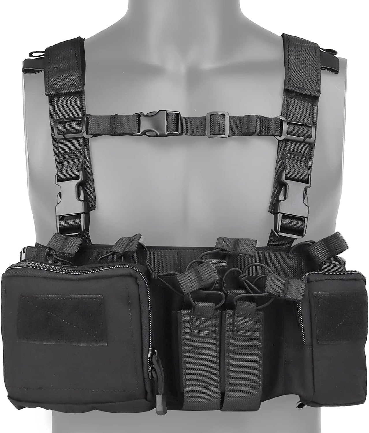 The Chest Rig X Harness has been redesigned to improve comfort, storage capabilities . The X harness was added for comfort and ultimate adjust ability. The addition of pouches allows the rig to be more streamlined and carry mission essentials where they count