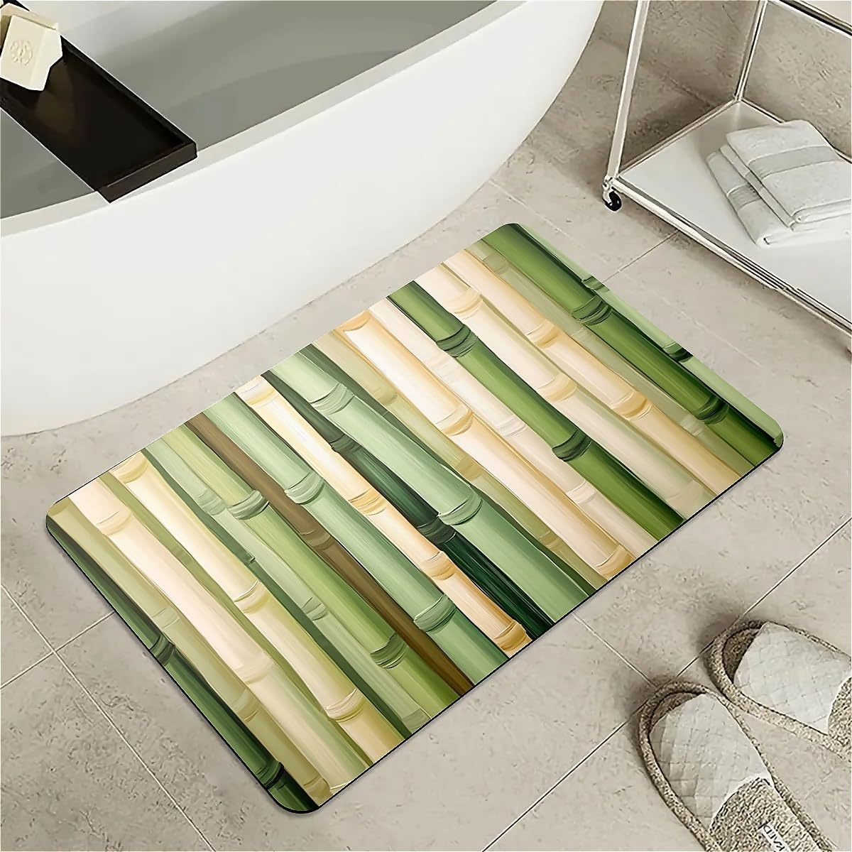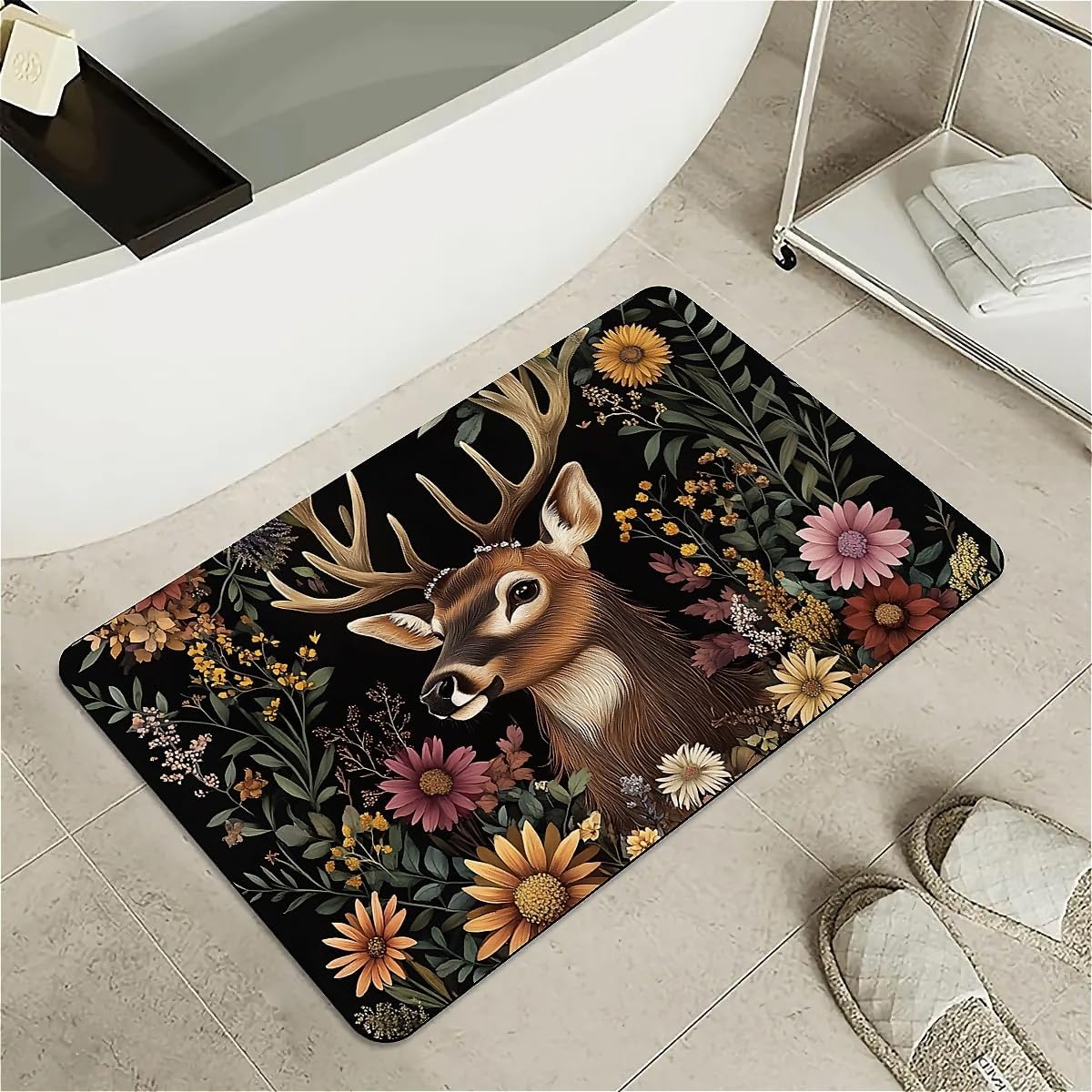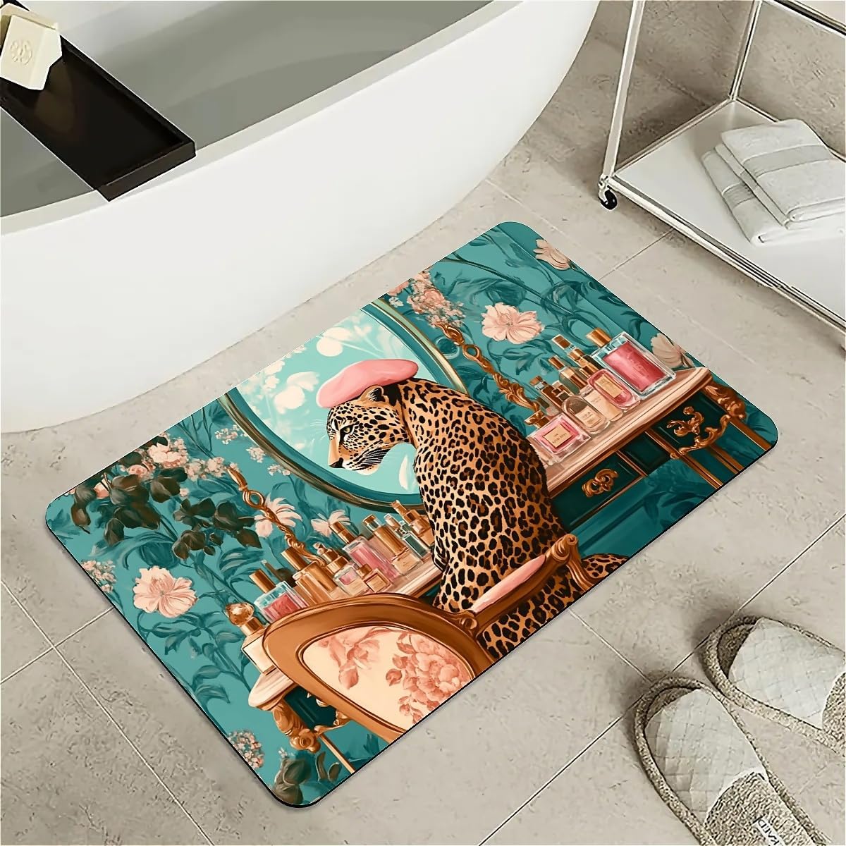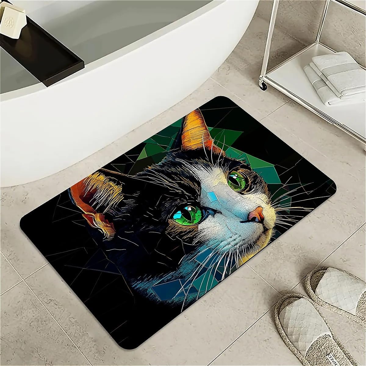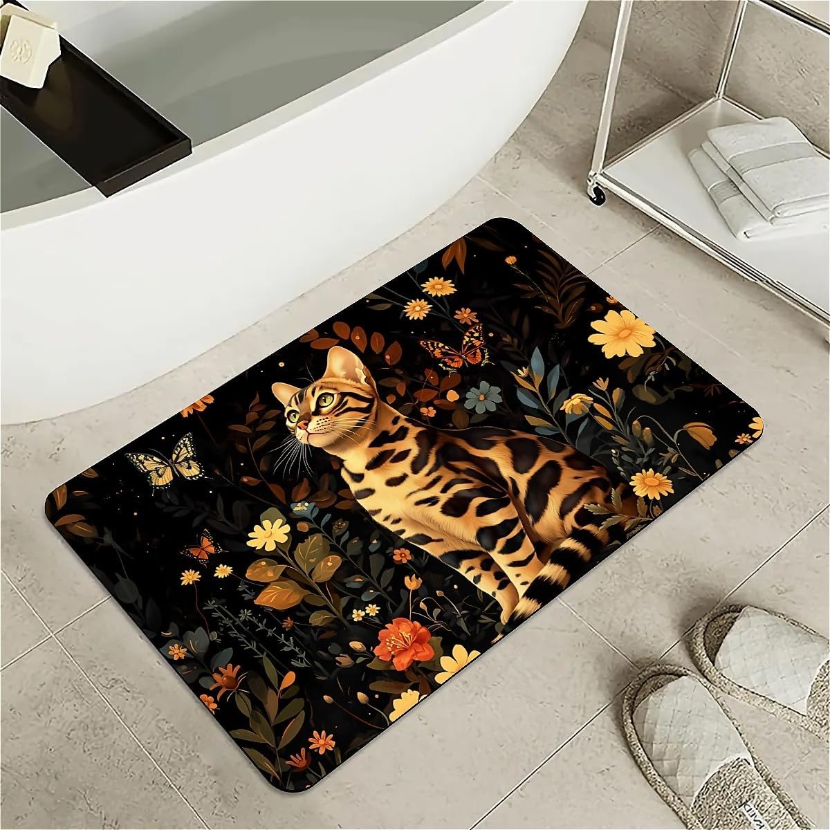 Features: [Beautiful pattern Design] Delicate pattern on a soft diatomaceous earth non-slip bath mat provides an artistical and relaxed feel to the bathroom.[Innovative Design]With the material of nano-level fiber, diatom mud latex mixture foam, as well as silicone rubber anti-skid foam, makes the rugs have upgraded absorption capacity. Meanwhile, it is no smell and no harm to health.this material is easy to clean and lasts for years.[Rubber Backing Technology] Super Water Absorbency Rug Mat Is Backed With Very Effective & Durable Rubber In Order To Prevent Skidding. The Rubber Backing Is Also Very Durable & Will Not Fall Off In The Washer Or Dryer. Prior To Placing The Rug On The Floor, Please Ensure The Floor Underneath The Rug Is Clean And Dry. Do Not Place The Rug On Wet Floors.[Multifunction] Apart from using it in the bathroom, it can also be used in your bedrooms, kid's room, laundry rooms, restaurant, hotel, banquet, wedding party as a doormat. Perfect bathroom gift for friends and family! [Keep Your dog and cat Area in Safe and Hygine]Whether you were annoyed by the wet residue or footprint on the floor during your cute doggy or kitten feeding time? You will love the fast drying, stain-resistant, and super absorbent rugs.Tips:Do not place it on sharp objects.