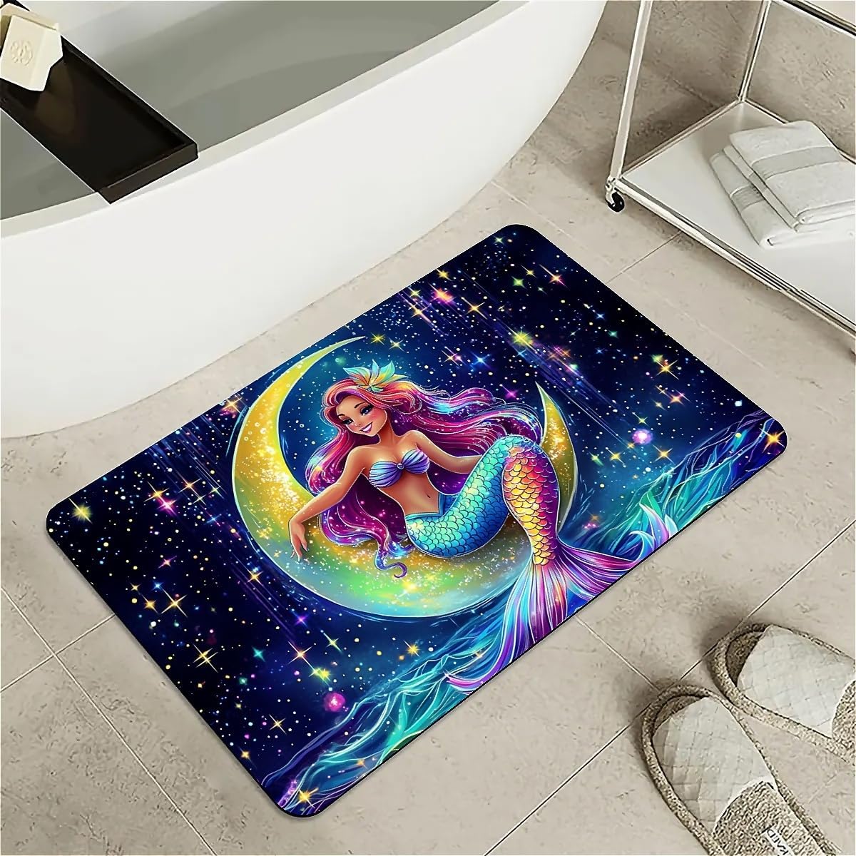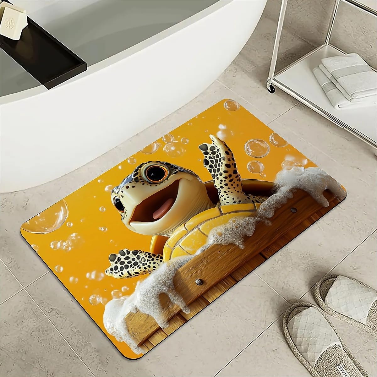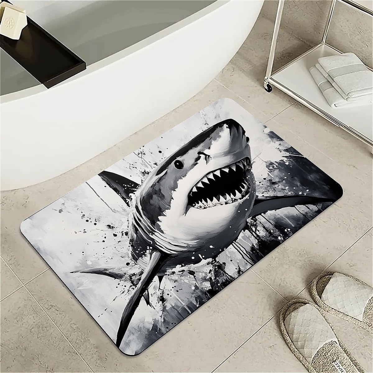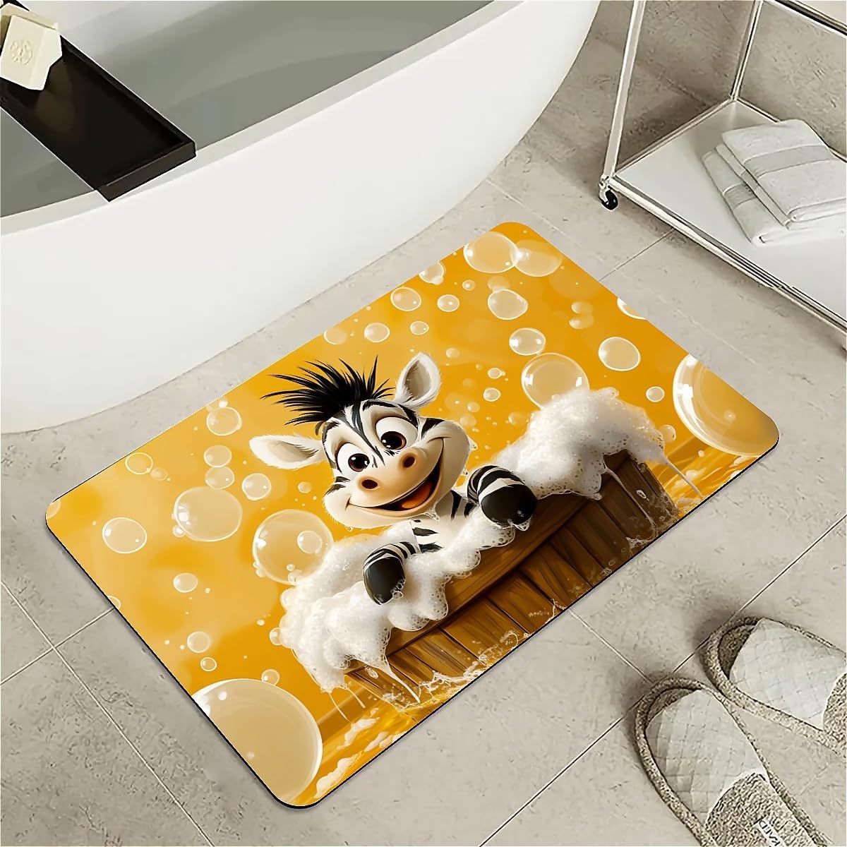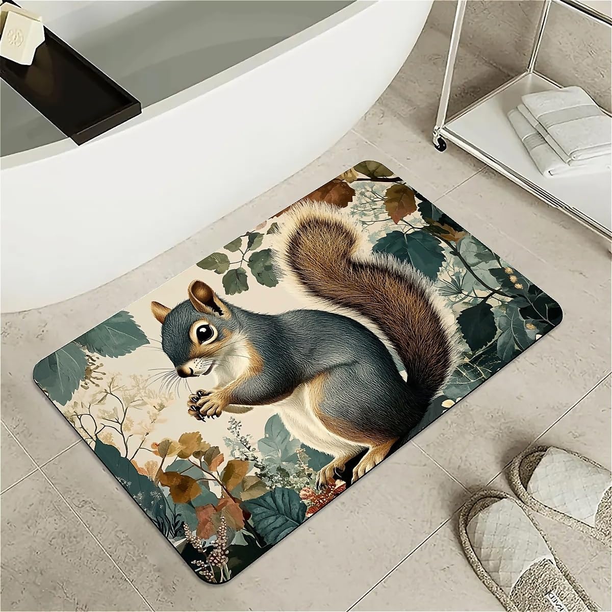 Features: [Beautiful pattern Design] Delicate pattern on a soft diatomaceous earth non-slip bath mat provides an artistical and relaxed feel to the bathroom.[Innovative Design]With the material of nano-level fiber, diatom mud latex mixture foam, as well as silicone rubber anti-skid foam, makes the rugs have upgraded absorption capacity. Meanwhile, it is no smell and no harm to health.this material is easy to clean and lasts for years.[Rubber Backing Technology] Super Water Absorbency Rug Mat Is Backed With Very Effective & Durable Rubber In Order To Prevent Skidding. The Rubber Backing Is Also Very Durable & Will Not Fall Off In The Washer Or Dryer. Prior To Placing The Rug On The Floor, Please Ensure The Floor Underneath The Rug Is Clean And Dry. Do Not Place The Rug On Wet Floors.[Multifunction] Apart from using it in the bathroom, it can also be used in your bedrooms, kid's room, laundry rooms, restaurant, hotel, banquet, wedding party as a doormat. Perfect bathroom gift for friends and family! [Keep Your dog and cat Area in Safe and Hygine]Whether you were annoyed by the wet residue or footprint on the floor during your cute doggy or kitten feeding time? You will love the fast drying, stain-resistant, and super absorbent rugs.Tips:Do not place it on sharp objects.