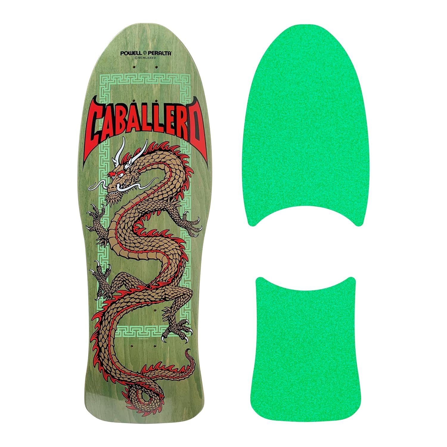 Set of Old School Die-Cut Style Skateboard Grip Tape fits Powell Peralta Caballero Chinese Dragon, Classic Oval with edge reveal.