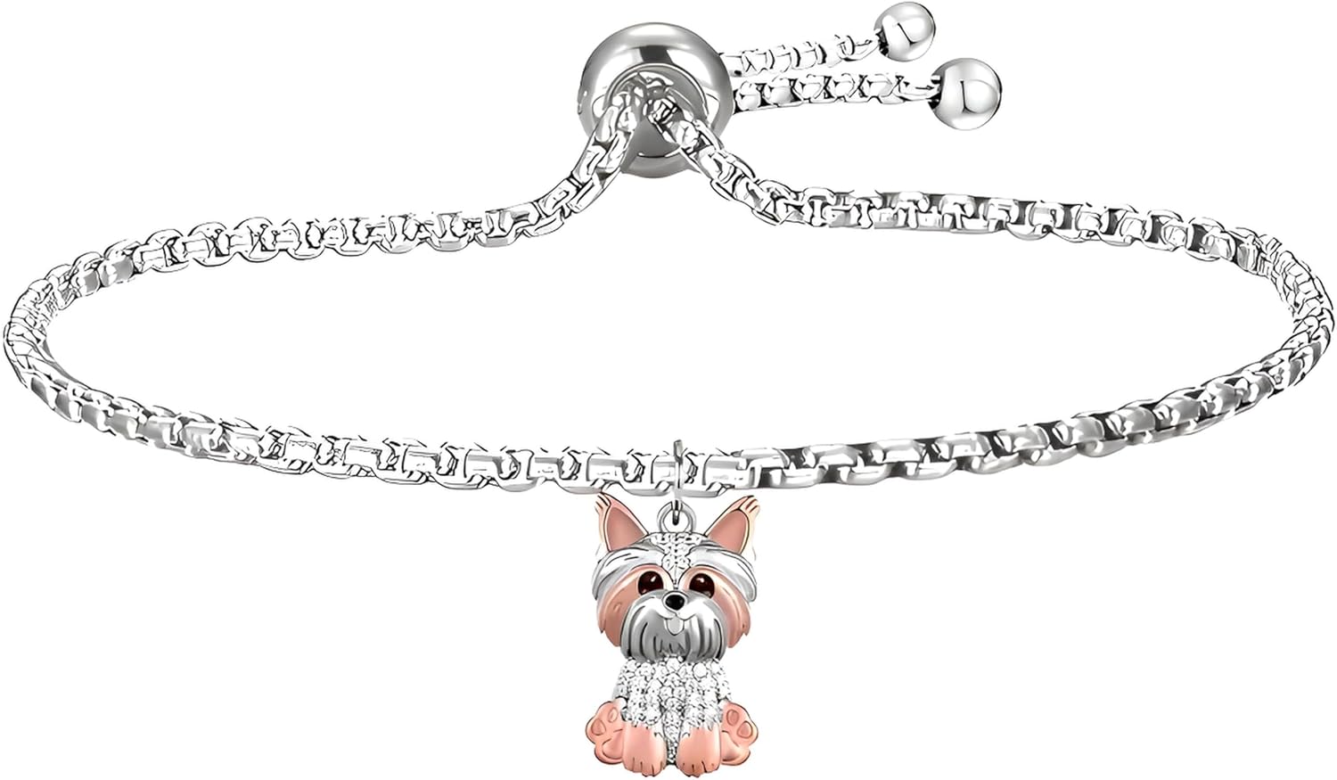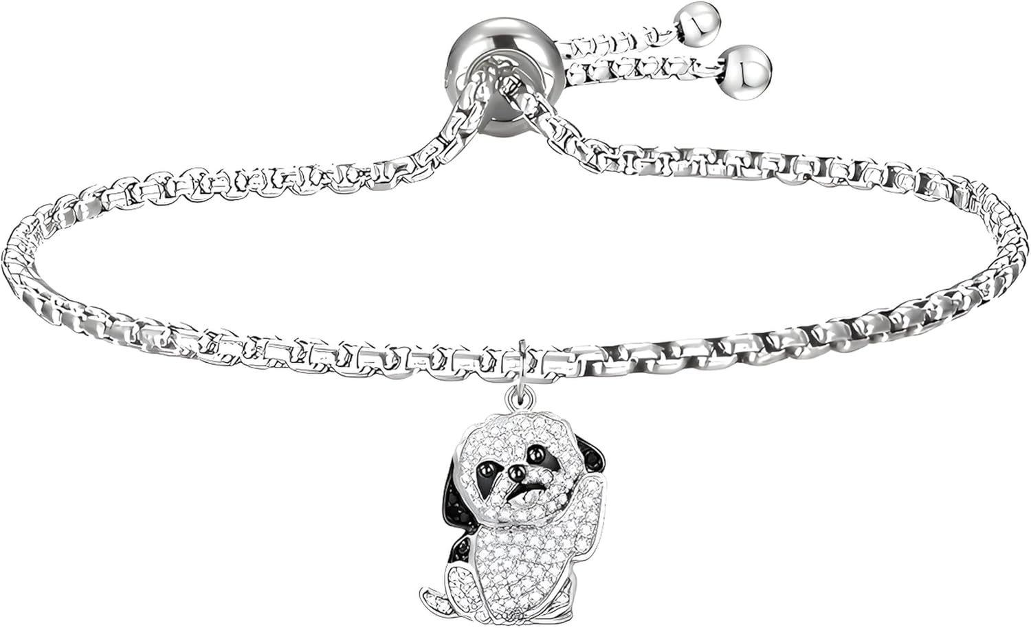 Add a charming touch to your everyday style with this delightful dog-themed bracelet. Featuring an adorable dog charm adorned with synthetic black and white zirconia accents, this adjustable bracelet makes the perfect accessory for any pet lover. The durable stainless steel cable chain measures 9.84 inches in length, providing comfortable wear for most wrist sizes. The secure lobster claw clasp ensures your bracelet stays in place throughout your daily activities. This versatile piece works beautifully for casual occasions and can be easily layered with other bracelets. The silver-toned finish gives it a classic, timeless appeal that complements any outfit. Whether treating yourself or searching for the perfect gift for a dog enthusiast, this bracelet combines style and sentiment in one meaningful accessory. The hypoallergenic materials make it suitable for sensitive skin, while the quality construction ensures long-lasting wear. Each detail of the dog charm is carefully crafted to capture the beloved characteristics that make our four-legged friends so special.
