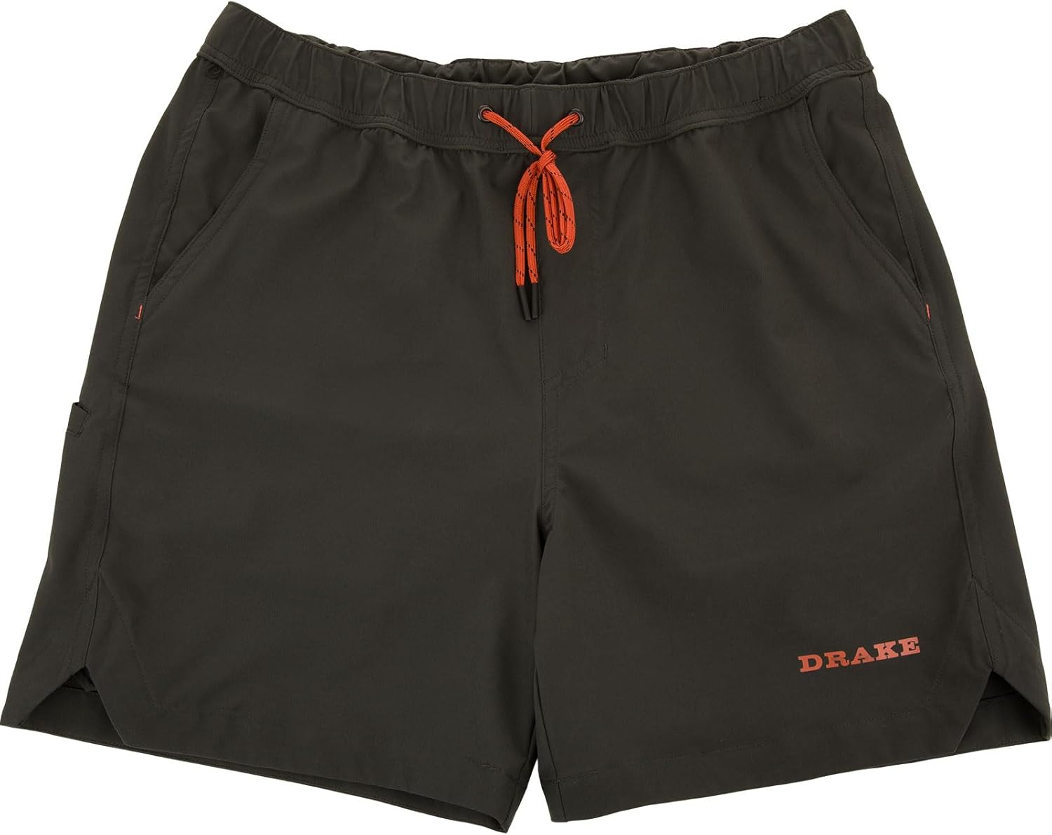 DRAKE WATERFOWL MEN'S LAKE SHORE DOCK SHORTS: The Drake Waterfowl Men's Lake Shore Dock Short is built for warm-weather comfort on and off the water. Made from a lightweight 90% polyester / 10% spandex blend (140 GSM), these men's fishing and outdoor shorts deliver breathable stretch, fast-drying performance, and reliable durability. The Nano-Tex DWR finish provides dependable water resistance, making them ideal for boating, lake days, or any wet environment. A built-in polyester mesh liner adds support, while the fully elastic waistband with an external drawstring ensures a secure, adjustable fit. Featuring two front mesh-lined pockets, a zippered side pocket, and a YKK zippered back pocket, these versatile men's shorts offer practical storage for small essentials. Designed with a 6-inch inseam, these active shorts provide a modern, mobile fit perfect for fishing, paddleboarding, hiking, or dockside relaxation. Lightweight, quick-drying, and ready for any warm-weather adventure, they deliver the performance you need with the comfort you want. FEATURES & MATERIALS: - 90% Polyester/10% Spandex for comfortable stretch; - Lightweight at 140 GSM; - DWR Water Repellent Finish; - Fully Elastic Waistband; - Drawstring Closure; - Two Front Mesh Lined Pockets; - One Zippered Pocket on the Right Side; - 6-Inch Inseam.