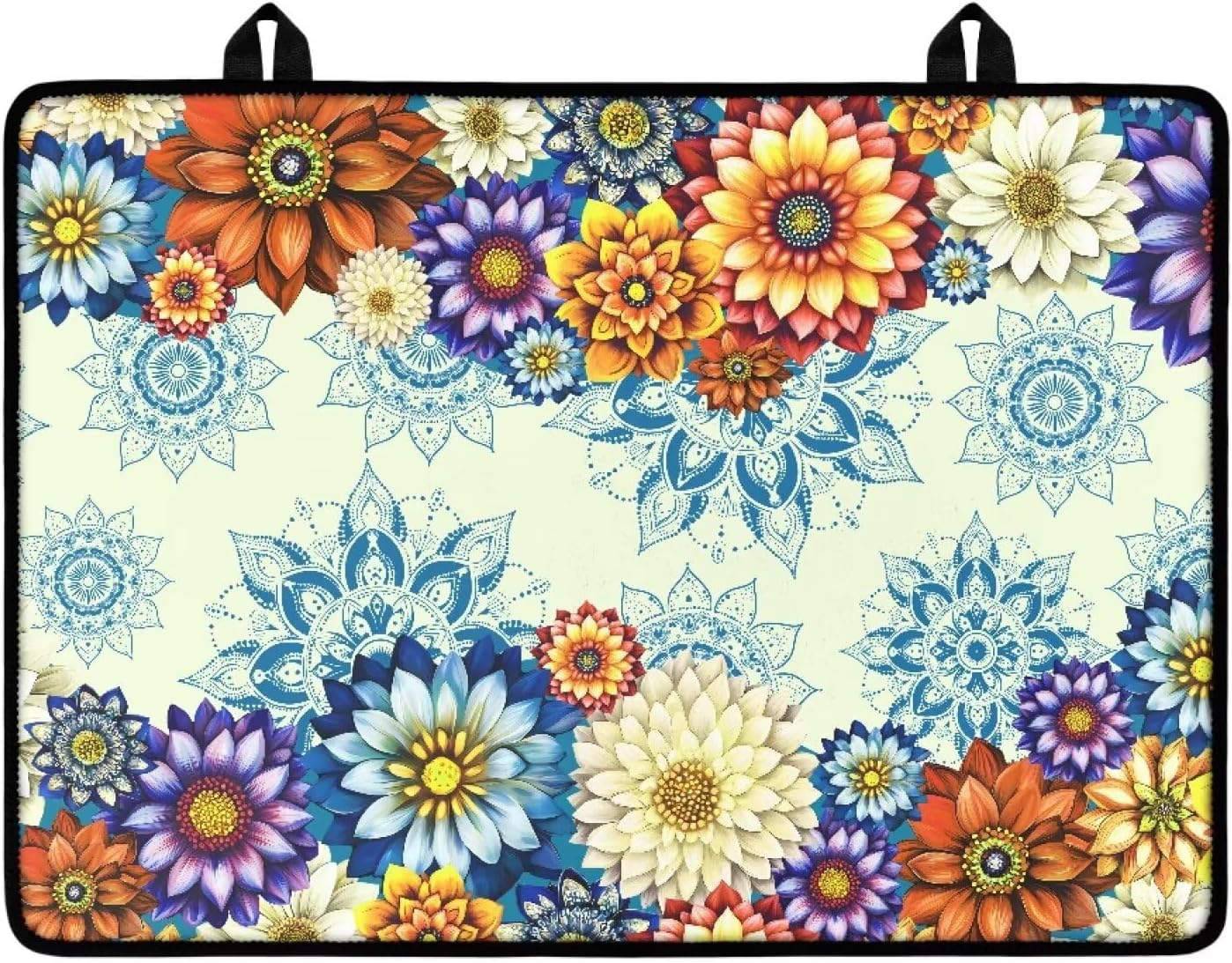 Material: Polyester and rubber Thoughtful Design: Electric range covers for stove top is good won't slide, fix the pots and pans on the induction silicone gasket plate. Make your cooking safer. This induction cooktop cover protects your induction cooktop from scratches and keeps your induction cooktop shiny and new every day. Applicable Scenario:This electric stove top covers for burners can not only be used on the electric stove, but also can be used as a preparation area on the top of the induction cooktop when using the oven or preparing dishes to expand the storage space for extra items.It can also be used as a countertop mat, a dish drying mat, a washing machine top to put on your washing machine to block the grey layer, and used as a mat for ironing clothes. Easy to Clean: Simply wipe with a damp cloth. It is also reusable and saves time and effort than cleaning the hob. Using a glass top stove cover protector can help your cooktop avoid scratches and stains and keep it tidy Important: Make sure the hob cools down slightly before you put the lid on! Also, it is not suitable for use when cooking on an induction hob as the hob will get hot and may damage the mat.