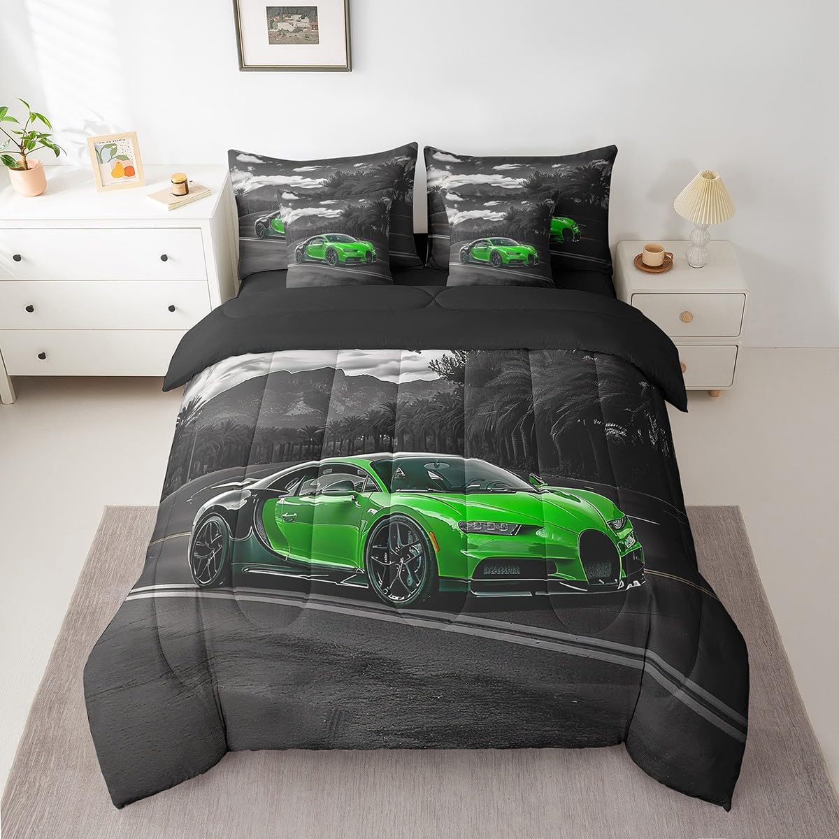 Colorful Makeover to Your Life Various size and color options, there are always decor room. Size Options: 7 Pieces Twin Size,1 Down Comforter 68"x 90", 1 Fitted Sheet 39"x75"x16", 1 Flat Sheet 96"x66", 2 Pillow Cases 30" x 20",2 Throw Pillow Covers,Covers Only. 18"x 18". 7 Pieces Full Size ,1 Down Comforter 79"x 90", 1 Fitted Sheet 54"x75"x16", 1 Flat Sheet 96"x81", 2 Pillow Cases 30" x 20",2 Throw Pillow Covers,Covers Only. 18"x 18". 7 Pieces Queen Size,1 Down Comforter 90"x 90", 1 Fitted Sheet 60"x80"x16", 1 Flat Sheet 102"x90", 2 Pillow Cases 30" x 20",2 Throw Pillow Covers,Covers Only. 18"x 18". 7 Pieces King Size,1 Down Comforter 104"x 90", 1 Fitted Sheet 78"x80"x16", 1 Flat Sheet 106"x90", 2 Pillow Cases 30" x 20",2 Throw Pillow Covers,Covers Only. 18"x 18". Decoration: For your mom, dad, sister, brother, grandma, wife, husband, and all other beloved with many surprising designs. You can find a design for everybody and every interest in our collection. Your Home,You Decide Different types of bedding sets could bring rooms in different styles. Also, rooms in different styles needs different types of bedding sets