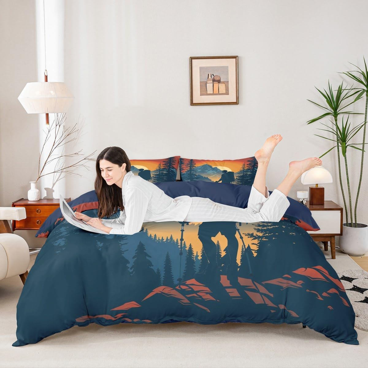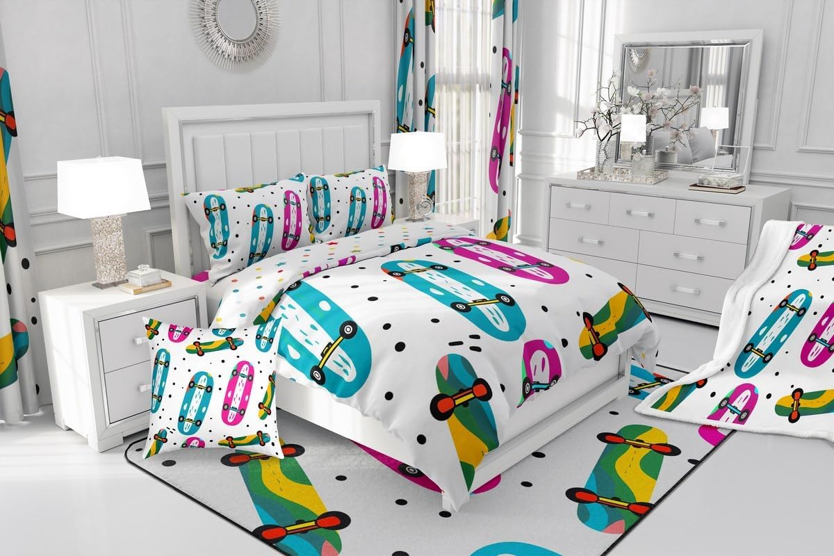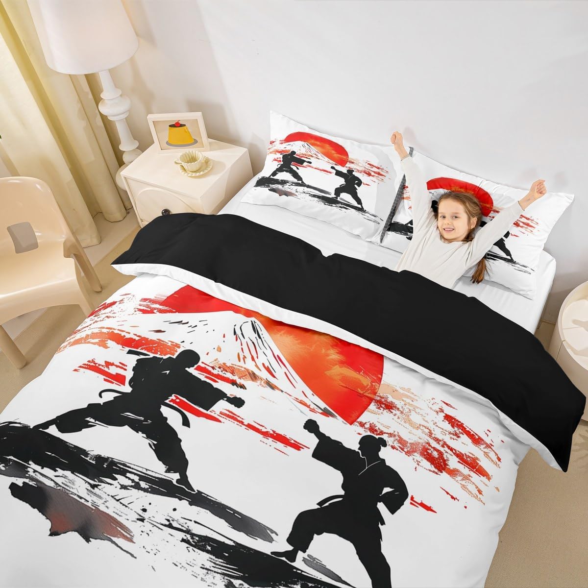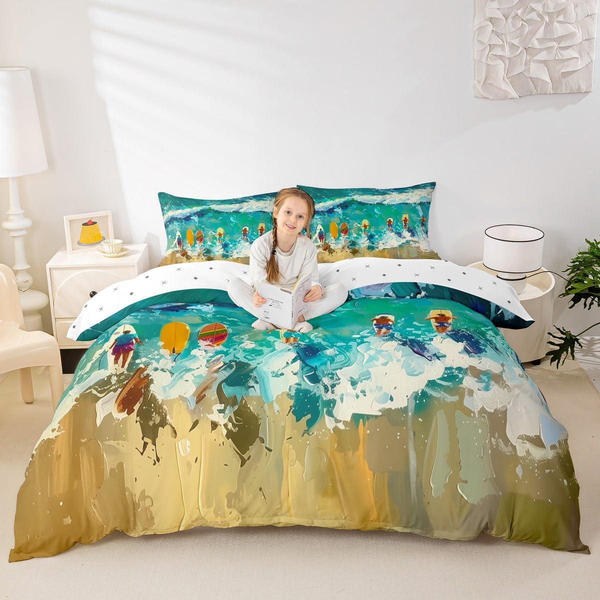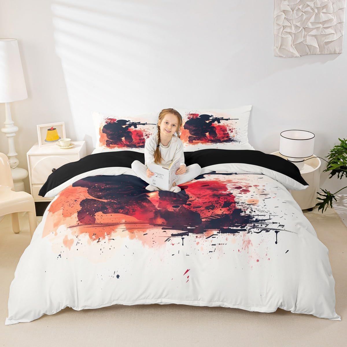 Size Information Toddler : 2Pcs Duvet Cover Set:1 Duvet Cover 42"x58",106x147cm and 1 Pillowcase 20"x30",51x75cm,Without Comforter Twin : 2Pcs Duvet Cover Set:1 Duvet Cover 68"x90",173x228cm and 1 Pillowcase 20"x30",51x75cm,Without Comforter Full : 3Pcs Duvet Cover Set: 1 Duvet Cover 79"x90",200x229cm and 2 Pillowcases 20"x30",51x75cm,Without Comforter Queen : 3Pcs Duvet Cover Set :1 Duvet Cover 90"x90",229x229cm and 2 Pillowcases 20"x30",51x75cm,Without Comforter King : 3Pcs Duvet Cover Set :1 Duvet Cover 104"x90",264x229cm and 2 Pillowcase 20"x36",51x92cm,Without Comforter Material: Polyester fabric. Fabric Characteristic: Polyester fabric with a specific hand feel. Design Feature: Available in multiple colorful printed designs. Intended Use: Suitable for home bedroom decoration. Care Instructions: Machine wash separately in cold water. Hang to dry. Do not bleach. Suitable For: Kids, teens, and adults. Fabric Property: Breathable construction. Seasonal Use: Designed for year-round use.