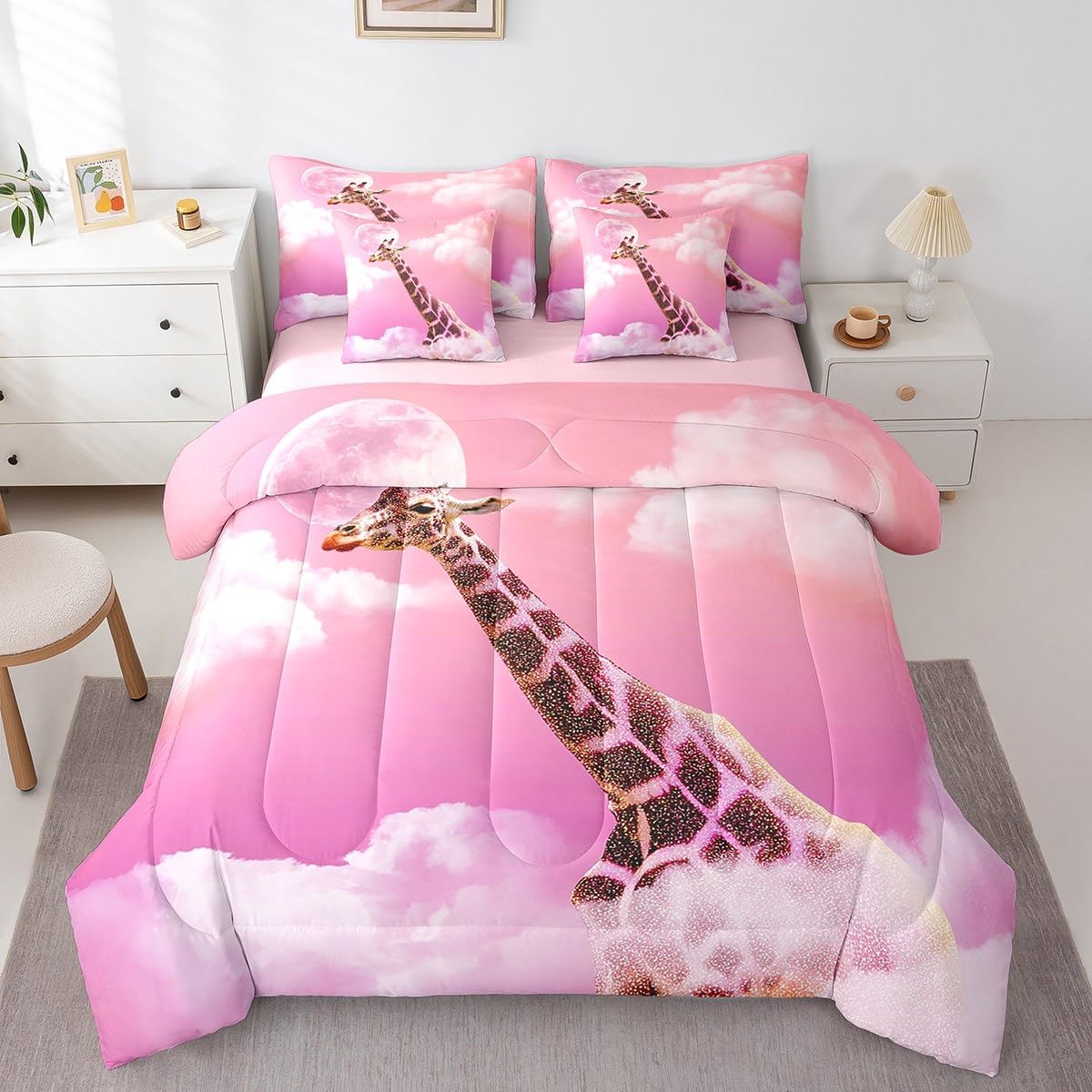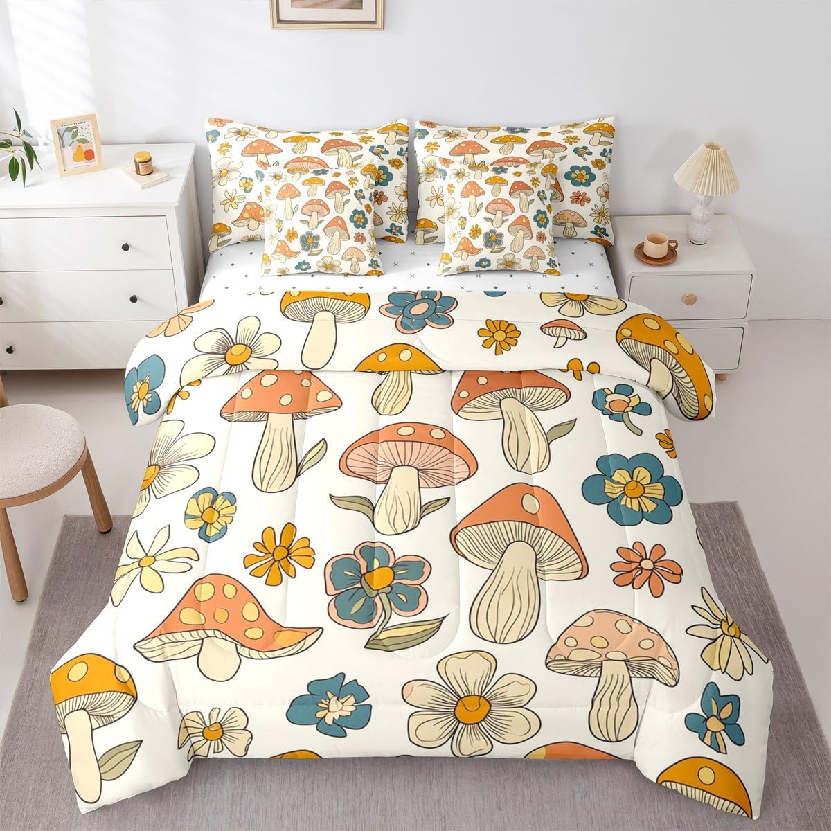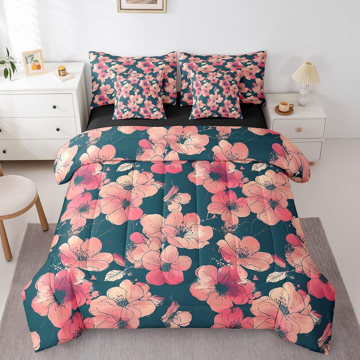 Size Information Twin : 1 Comforter: 68"x90",1x Fitted Sheet 39"x75"x16",1x Flat Sheet 96"x66",2x Pillowcases 20"x30" and 2 Pillow Cover 18"x18" Full : 1 Comforter: 79"x90",1x Fitted Sheet 54"x75"x16",1x Flat Sheet 96"x66",2x Pillowcases 20"x30" and 2 Pillow Cover 18x18" Queen : 1 Comforter: 90"x90",1x Fitted Sheet 60"x80"x16",1x Flat Sheet 102"x90",2x Pillowcases 20"x30" and 2 Pillow Cover 18"x18" King : 1 Comforter: 104"x90",1x Fitted Sheet 78"x80"x16",1x Flat Sheet 106"x90",2x Pillowcases 20"x36" and 2 Pillow Cover 18"x18" Style Variety: Available in multiple styles. Suitable Spaces: For use in bedrooms, guest rooms, living rooms, or RVs. Printing Process: Manufactured using reactive printing and dyeing technology. Design Feature: Diverse pattern options. Care Instructions: Machine washable. Air dry. Low-heat ironing recommended. Not suitable for bleach, dry cleaning, or machine drying. Intended Decor: Designed for home textile applications.