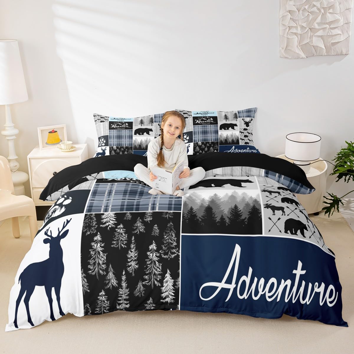 I: Package Include 1 Duvet Cover and 2 Pillowcases The Modern Duvet Cover Set Pattern Bedding Set,Simply Decorating Your Rooms Any Time You Want,Bringing You Fresh Feel for Year Round Use. Long Lasting Made From Polyester Microfiber,The Duvet Cover Offers Long - Lasting Strength,A Noticeably Soft Hand Feel. II :Size Information Twin SizeL: 2Pcs Duvet Cover Set:1 Duvet Cover 68"x90"(173x228cm),1 Pillowcase 20"x30"(51x75cm),Without Comforter. Full Size: 3Pcs Duvet Cover Set): 1 Duvet Cover 79"x90"(200x229cm),2 Pillowcase 20"x30"(51x75cm),Without Comforter. Queen Size: 3Pcs Duvet Cover Set:1 Duvet Cover 90"x90"(229x229cm),2 Pillowcase 20"x30"(51x75cm),Without Comforter. King Size: 3Pcs Duvet Cover Set:1 Duvet Cover 104"x90"(264x229cm),2 Pillowcase 20"x36"(51x92cm),Without Comforter. III: Personalize Your Bedroom Beautiful Design and Colorful Print,Makes Your Bedroom Unique and Brings You a Wonderful Dream. IV: Washing Instructions Machine Wash Separately In Cold Water,Hang Dry,Do Not Bleach. V: Occasion The Cute Soft Duvet Cover Bedding Sets Designed for Children,Adult,Men,Women,Teens. This Duvet Cover Set Is Also Suitable for Full Seasons,Spring,Summer,Autumn and Winter. It Also Can Be Used As a present for Your Family and Friends. Such As Halloween,Christmas.