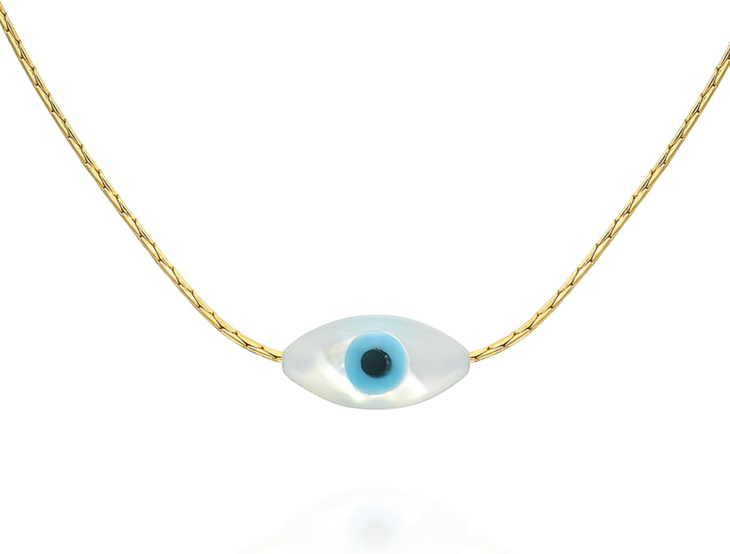 MALY Choker - NP1093-G Tiny round shell eye charm on a thin choker necklace