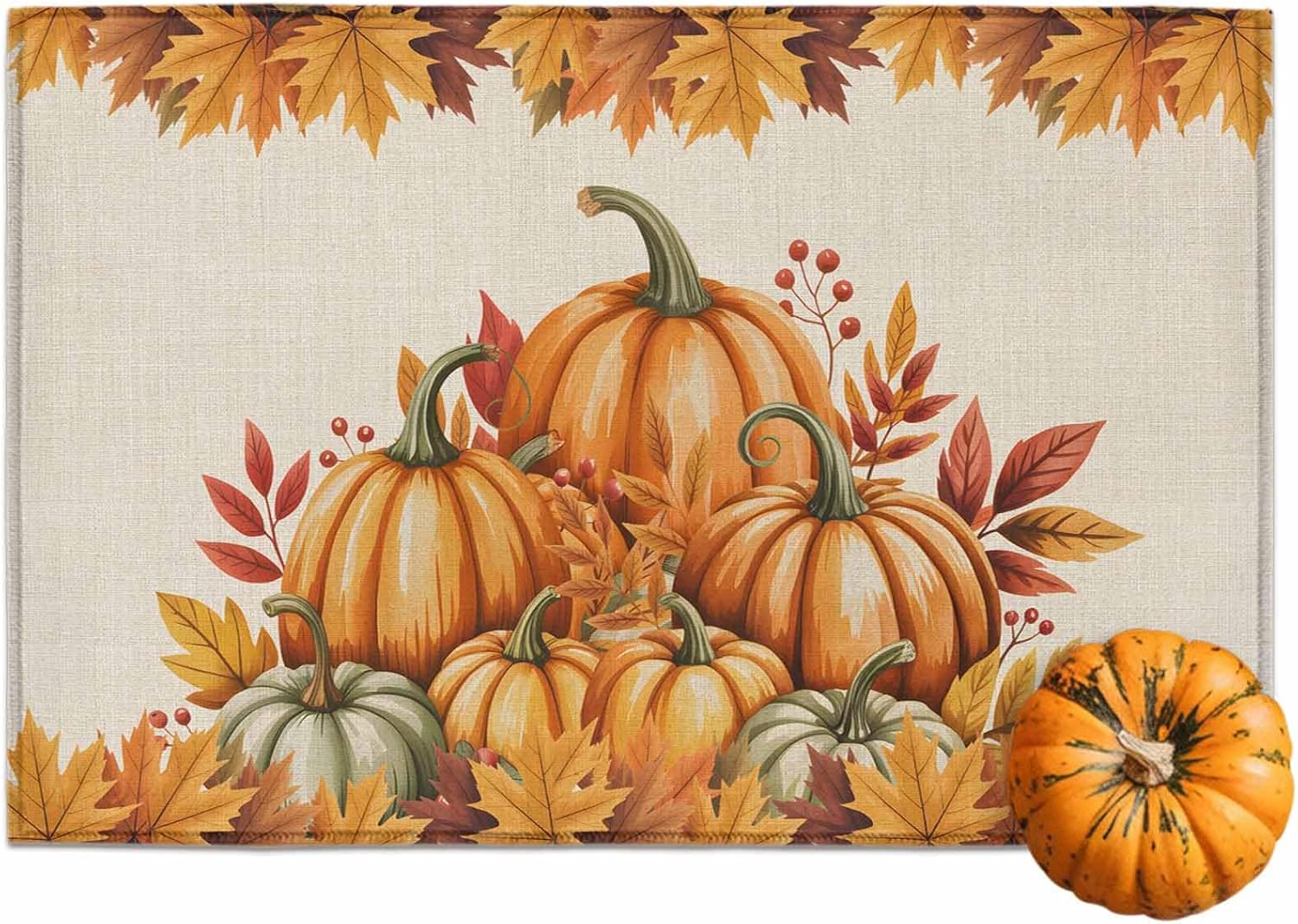 ——Specification—— Size Options: 24"x16", 30"x18", 31.5"x20" Material: Polyester Fabric Rug Features: Non slip backing, Low profile, Machine washable, Absorbent, Resist Dirt ——Key Features—— 1. Absorbent Material: Our Fall Front Door Mat Indoor Entrance is made from premium absorbent fabric, efficiently absorb water, mud, and dirt from your shoes. 2. Non-slip Backing: Our autumn doormat is equipped with a non slip backing that ensures the mat stays in place, preventing slips and falls. 3. Low Profile Design: The pumpkin patterned door mat's low profile design fits easily under most doors, allowing them to open and close without obstruction. 4. Machine Washable: Just toss the doormat in the washing machine to remove stains and clean. It's designed to withstand multiple wash cycles, providing long-lasting use. 5. Multi-size Options: Available in four different sizes (24"x16", 30"x18", 31.5"x20"), ensuring that you find the perfect fit for your entryway, front door, or any indoor space. ——Usage Scenarios—— Rural Front Door Mat: Place the mat right inside your front door to trap moisture, dirt, and debris before it enters your home. Indoor Mats for Entryway: Use it at the main entryway or side door to keep your house looking neat and tidy, regardless of what the weather brings outside. Farmhouse Rugs for Entryway: Enhance the look of your hallway or entryway with our stylish and functional mat. Doormat Indoor Entrance: Ideal for apartment or compact living spaces where every square foot counts. Rustic Entrance Rugs Indoor: Perfect for use in various indoor settings such as mudroom, laundry room, or basement where wet and dirt are prevalent.