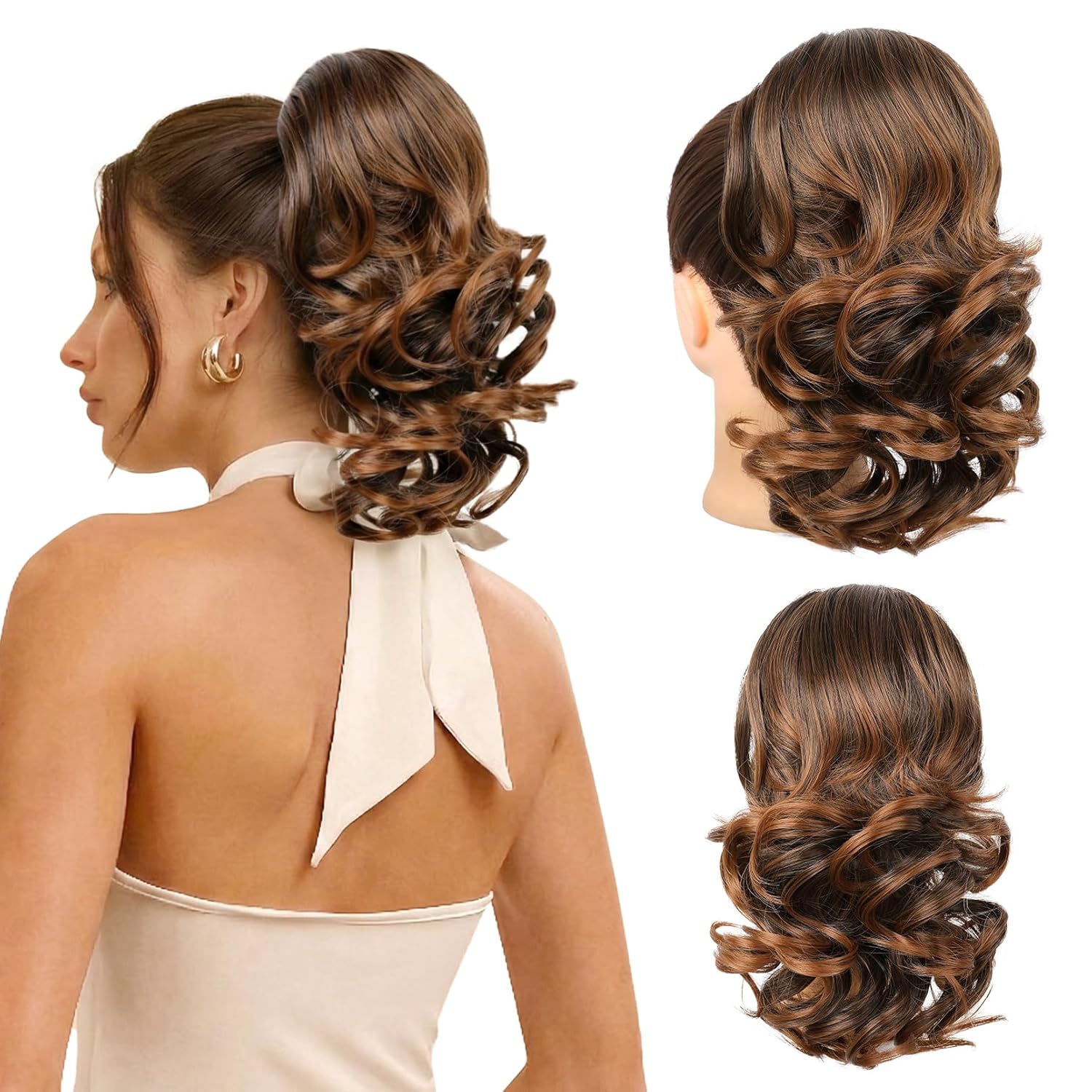 Product Name: Drawstring Ponytail ExtensionColor: Black, Blonde, Blonde with Blonde Highlights, Dark Chocolate Brown and moreMaterial: high-temperature Synthetic silkWeight: About 123gSize: 14 InchOccasions: Date, Shopping, Vacation, Daily, Photo-Shoot, Cosplay, Halloween, CostumeFLUFYMOOZ Drawstring Ponytail Extension with Natural Looking and End Curls uses premium materials for a comfortable fit and is your go-to brand for flawless style.