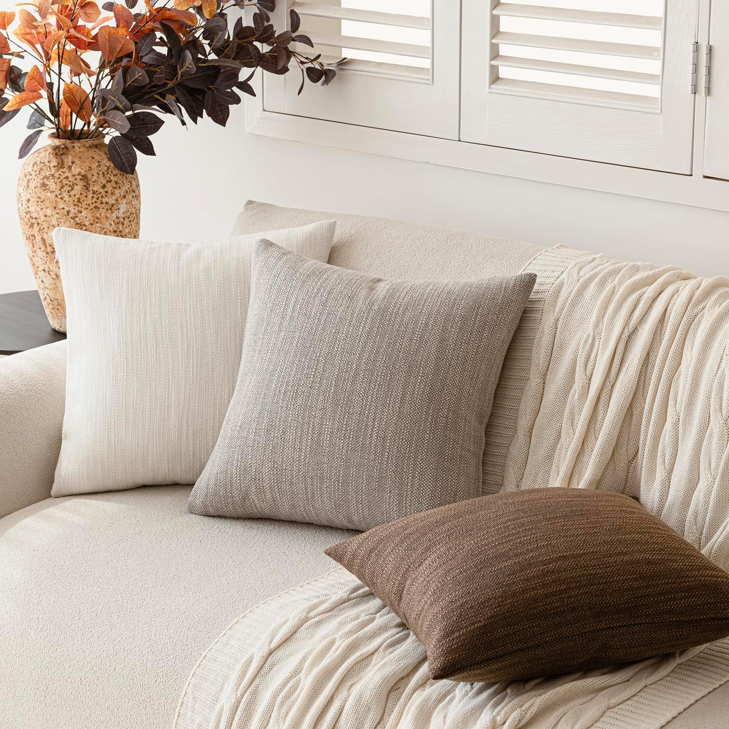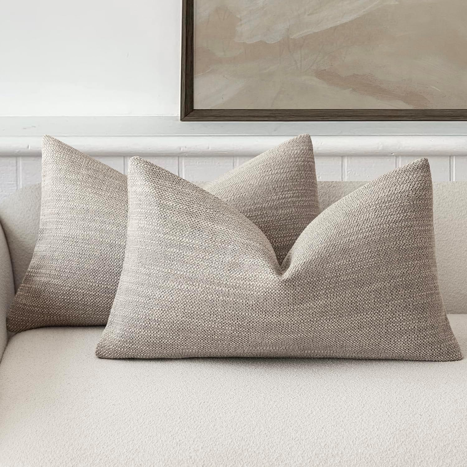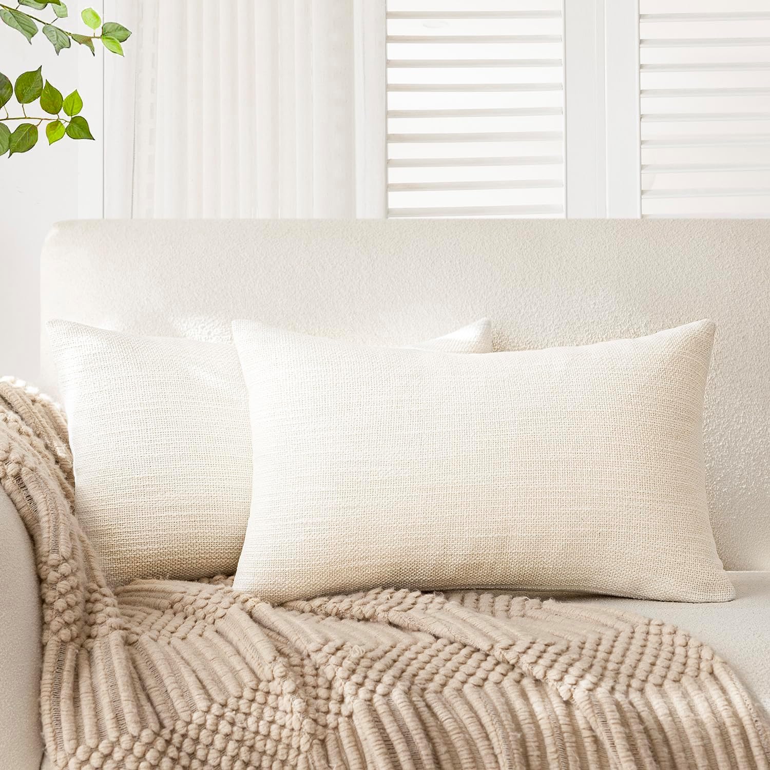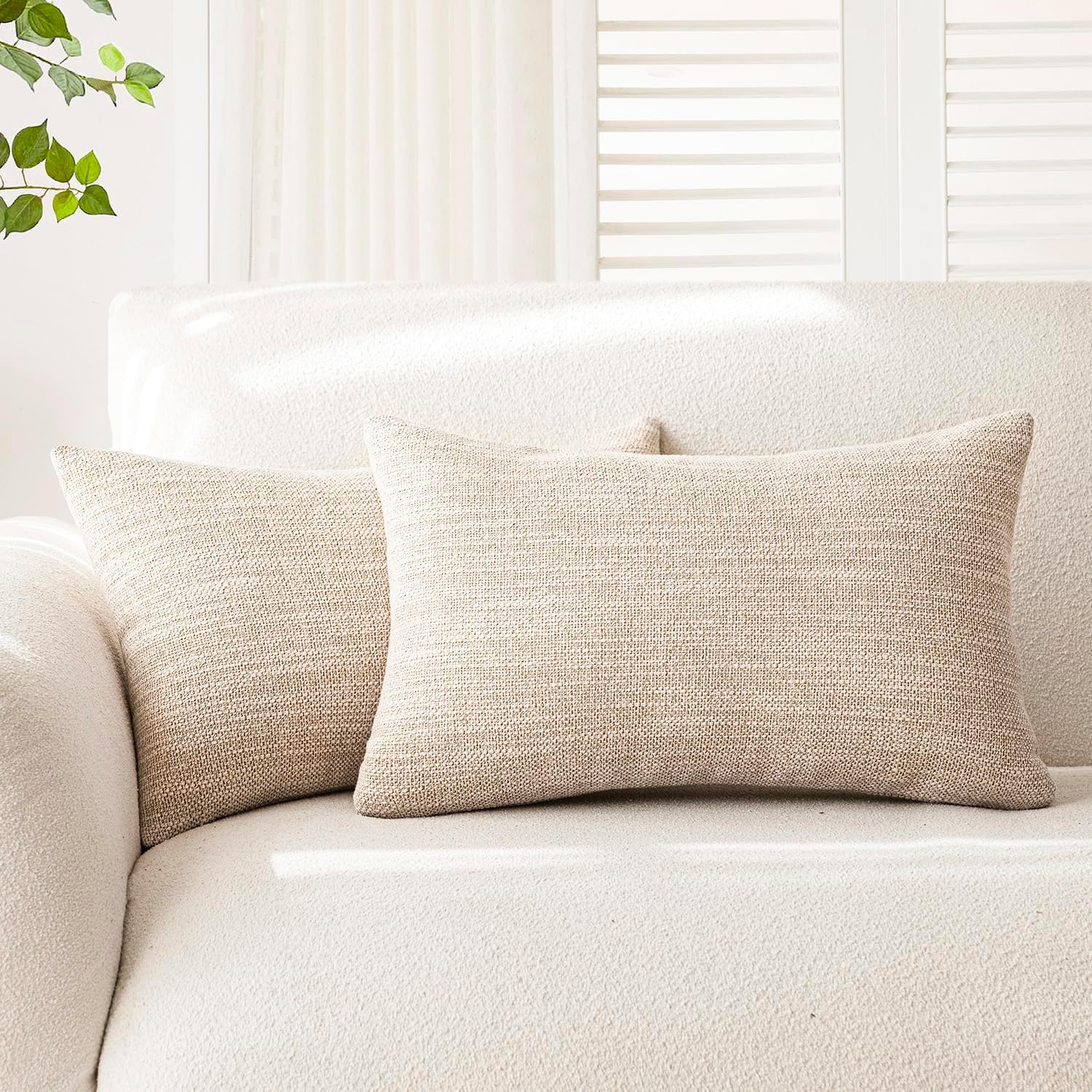 Foindtower Set of 2 Decorative Textured Burlap Linen Throw Pillow Covers Farmhouse Boho Cushion Cover Solid Accent Pillowcase for Couch Sofa Bed Living Room Home Decor, 24×24 Inch,Light Beige