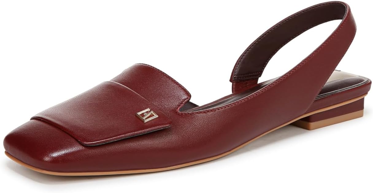 The office-ready slingback dress flats that are endlessly wearable and impossibly chic. Leather upper responsibly sourced through Leather Working Group-audited factories. Eco-conscious linings with soft + sustainable comfort. Small metallic detail. Square toe.