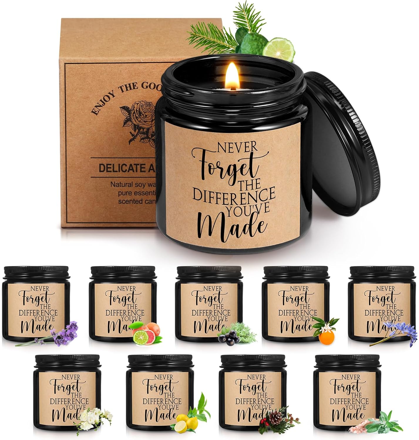 Features: Candle care: Carefully packaged in a lovely gift box, this thank you scented candle is the ideal choice as a gift, please keep candle away from fans, open windows, hot surfaces, children, pets, etc.Pleasant and relaxing smell: Candle infused with pleasant fragrances, these appreciation candle gift is suitable for sleep promoting and relief from anxiety, depression and stress. Reduces anxiety, improves sleep. Specifications: Material: waxColor: as picture shownSize: as picture shownPackage includes: 10 x Inspirational candle giftsNotes: Manual measurement, please allow slight errors on size. The color may exist a slight difference due to different screen displays.