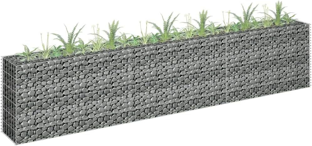 This gabion raised bed allows you to conveniently create a secure yet stylish border for a flower or plant bed in your garden or on your patio.The sturdy gabion is designed to be filled with rocks or gravel. Made of rustproof and weather-resistant galvanised steel, the gabion is very stable and durable. The transverse and longitudinal wires welded at every intersection offer extra stability to the gabion planter and also works as a mesh grid.Please note that stones and plants are not included in delivery.Color: SilverMaterial: Galvanized steelOuter dimensions: 141.7" x 11.8" x 3.9" (L x W x H)Inner dimensions: 133.9" x 3.9" x 3.9" (L x W x H)Wall thickness: 3.9"Mesh size: 3.9" x 2" (L x W)Wire diameter: 0.1"High load capacityAssembly required: Yes
